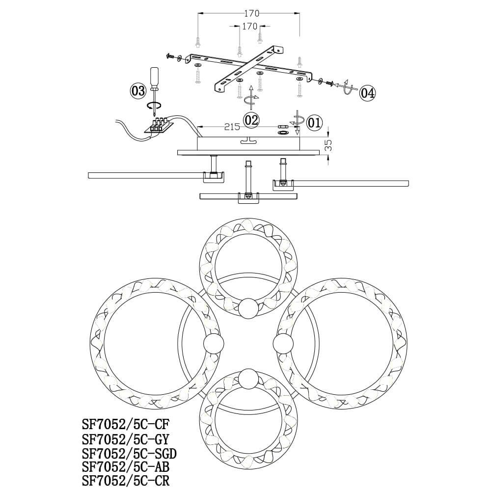 Потолочная люстра Seven Fires Oden SF7052/5C-GY-RGB