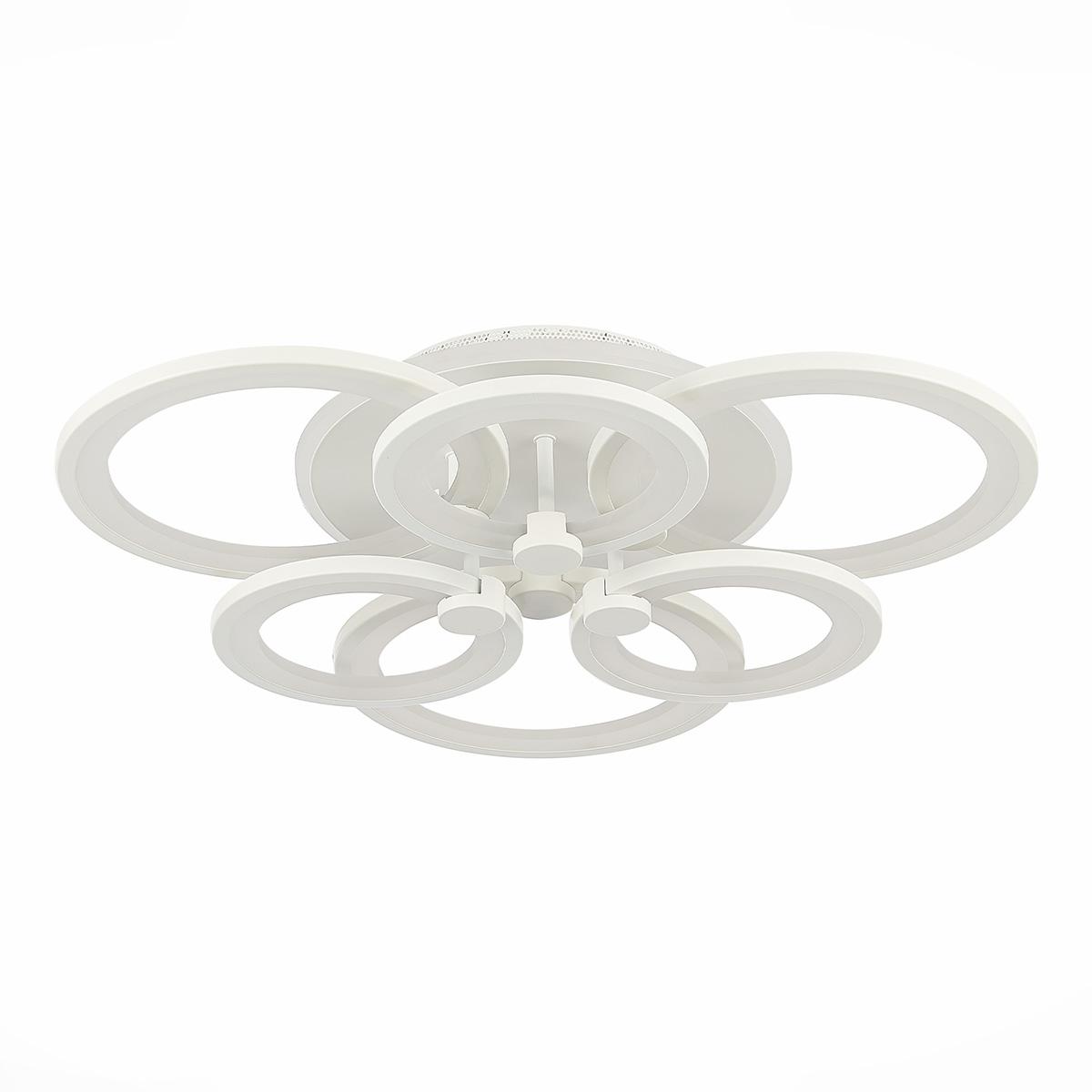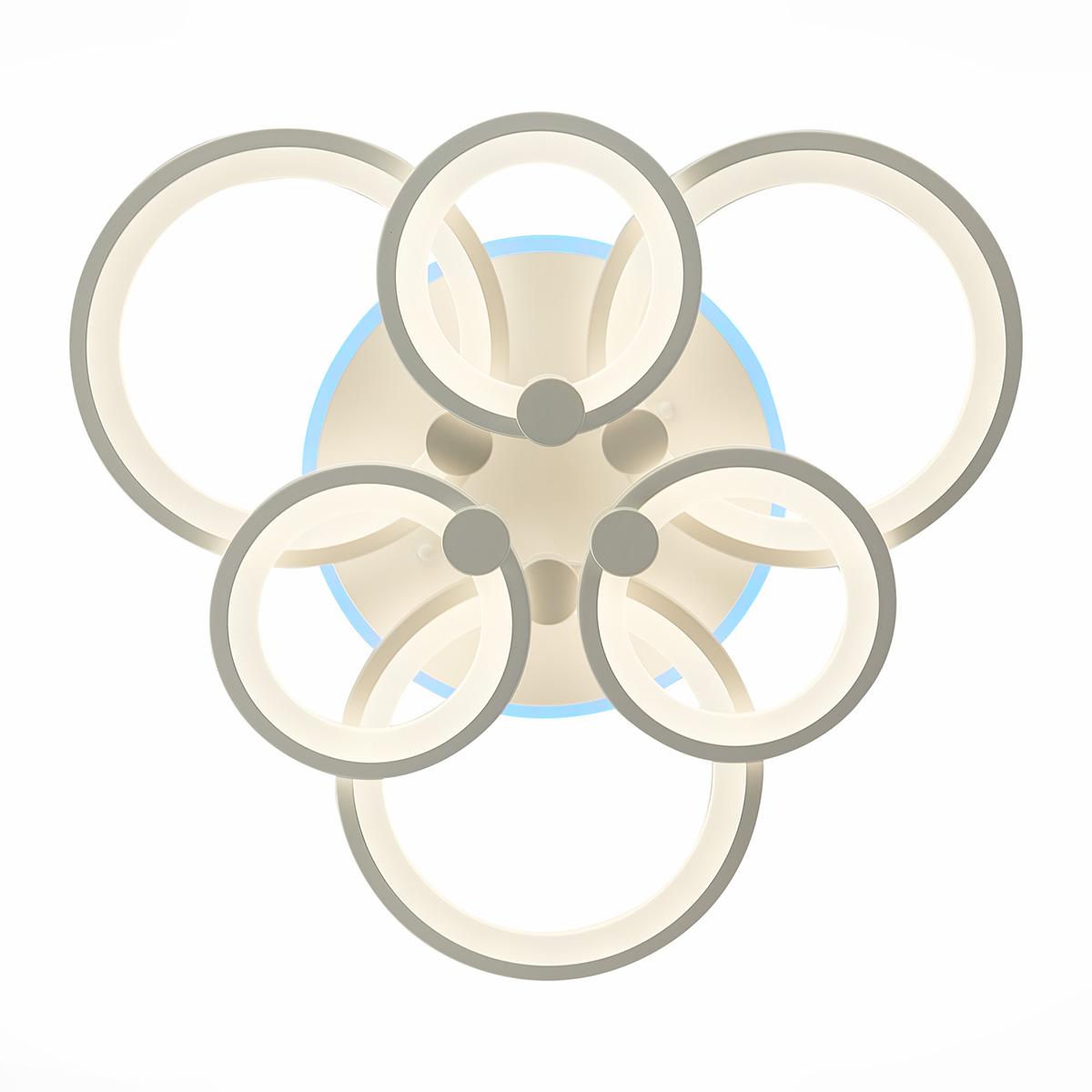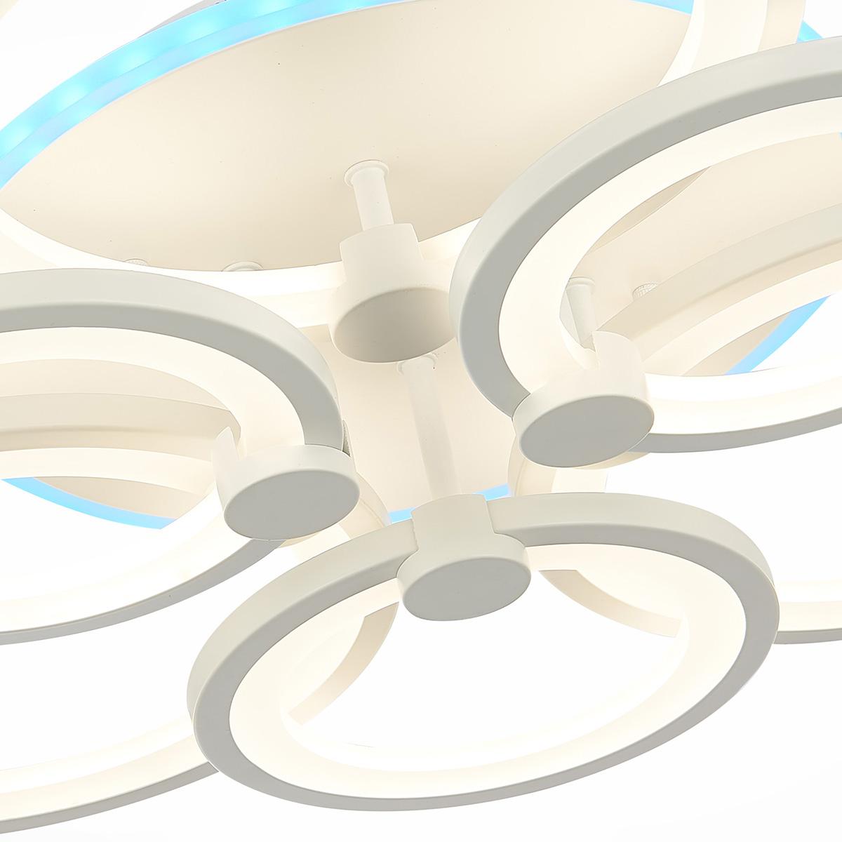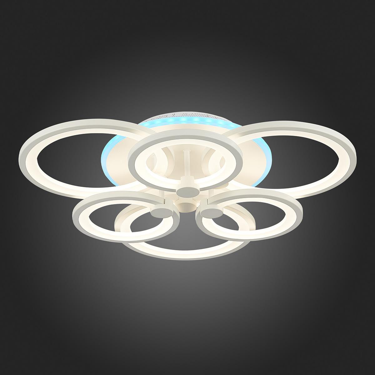 Потолочная светодиодная люстра Evoled Leto SLE500752-06RGB от Китайского бренда из коллекции Leto будет удачно смотреться в кухне в хай-тек стиле. Светильник выполнен из акрила с плафонами в форме белого цвета.