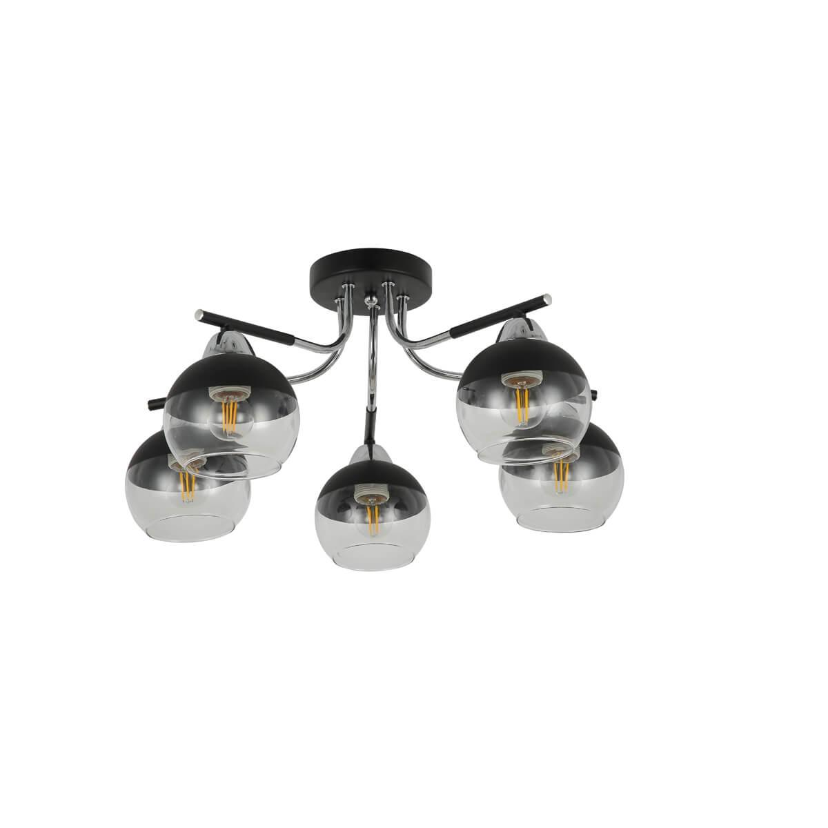 Производитель светильника рекомендует для устройства 5 ламп накаливания с цоколем E27 и мощностью 60 W, что позволит осветить помещение площадью кв.м. Габариты изделия: высота – 255 мм, диаметр – 550 мм.
