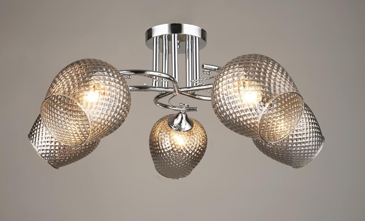 Производитель светильника рекомендует для устройства 5 ламп накаливания с цоколем E27 и мощностью 60 W, что позволит осветить помещение площадью кв.м. Габариты изделия: высота – 230 мм, диаметр – 600 мм.
