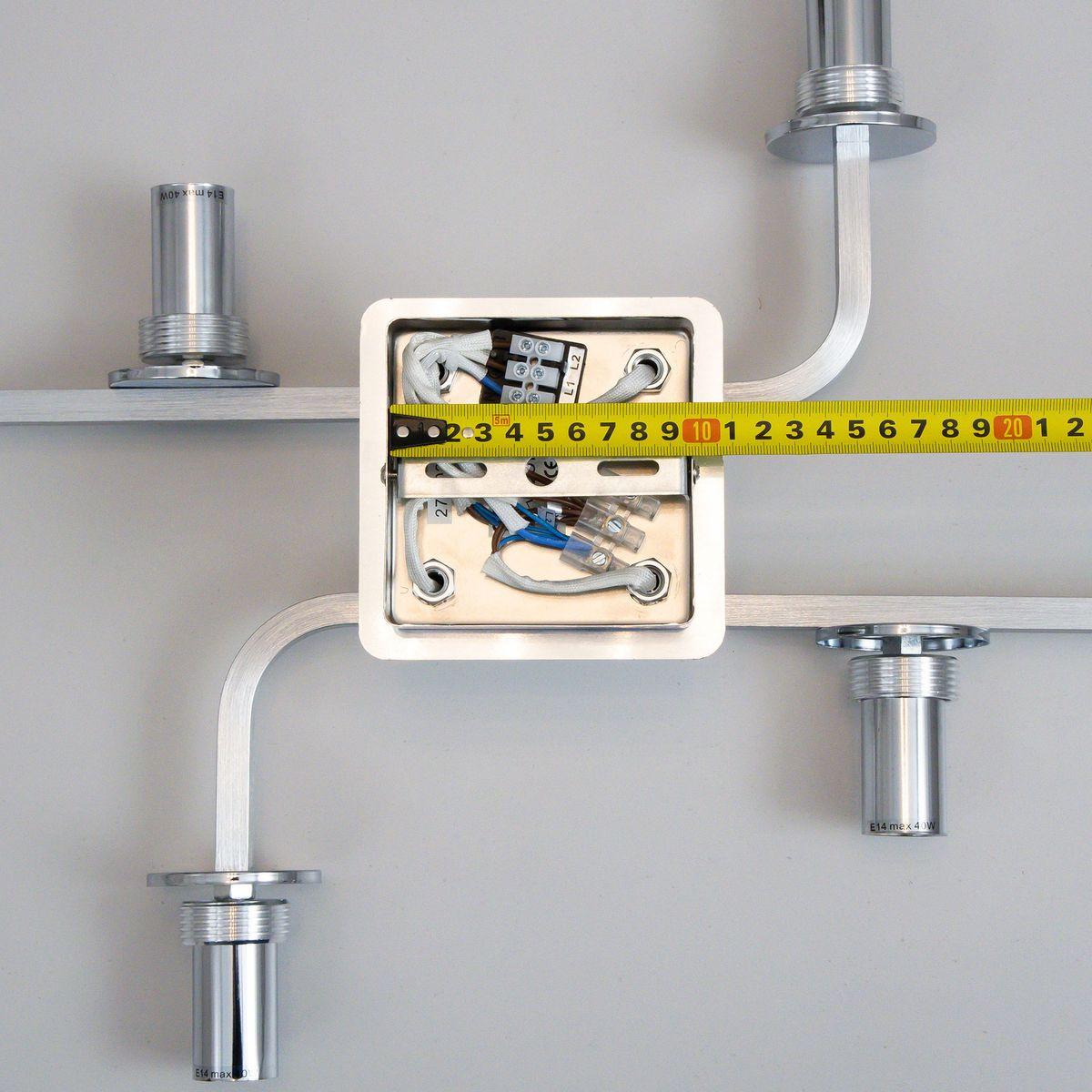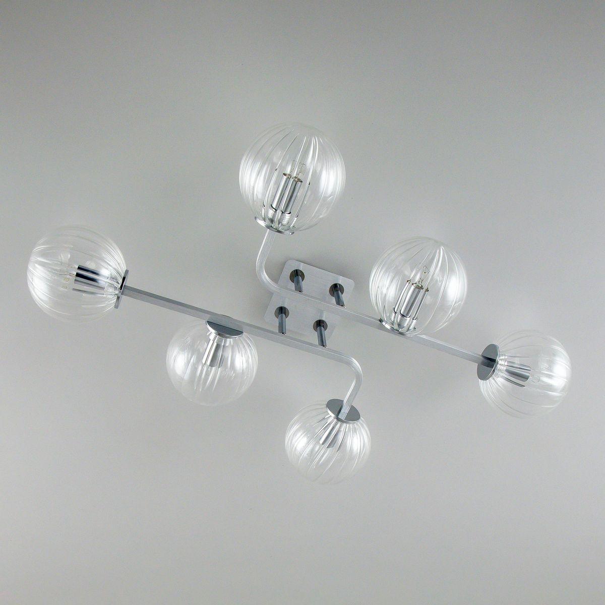 Производитель светильника рекомендует для устройства 6 ламп накаливания с цоколем E14 и мощностью 40 W, что позволит осветить помещение площадью 14 кв.м. Габариты изделия: высота – 185 мм, диаметр – мм.