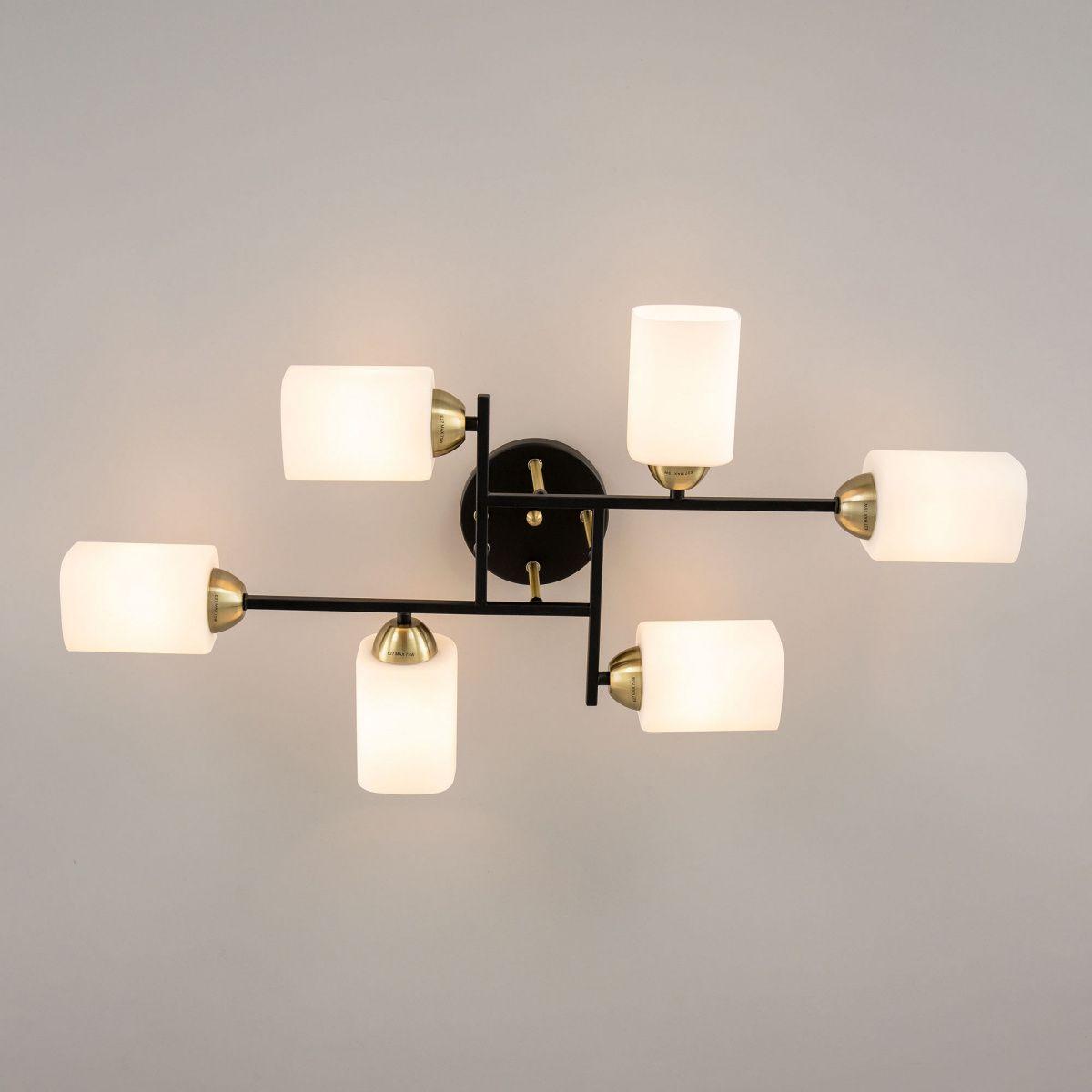 Производитель светильника рекомендует для устройства 6 ламп накаливания с цоколем E27 и мощностью 75 W, что позволит осветить помещение площадью 19 кв.м. Габариты изделия: высота – 185 мм, диаметр – мм.