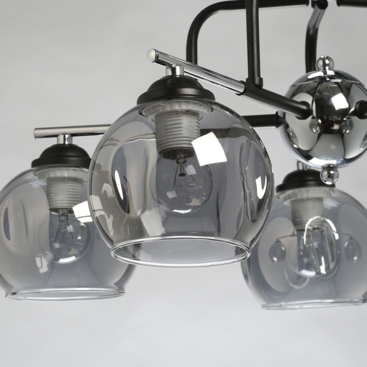 Производитель светильника рекомендует для устройства 5 ламп накаливания с цоколем E27 и мощностью 60 W, что позволит осветить помещение площадью 15 кв.м. Габариты изделия: высота – 270 мм, диаметр – 580 мм.