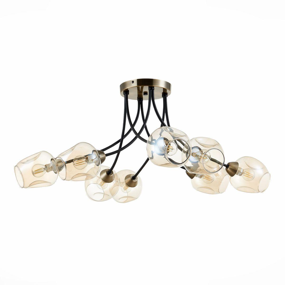 Потолочная люстра Evoluce Besano SLE205302-08 от Китайского бренда из коллекции Besano будет удачно смотреться в гостиной в стиле модерн. Светильник выполнен из стекла с плафонами в форме янтарного цвета.