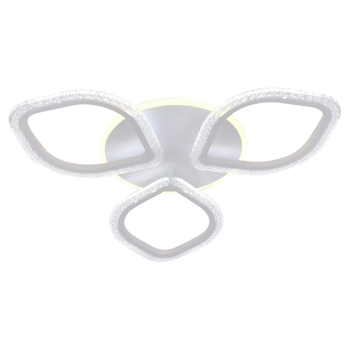 Производитель светильника рекомендует для устройства 3 светодиодные лампы с цоколем LED и мощностью 65 W, что позволит осветить помещение площадью 7 кв.м. Габариты изделия: высота – 85 мм, диаметр – 640 мм.