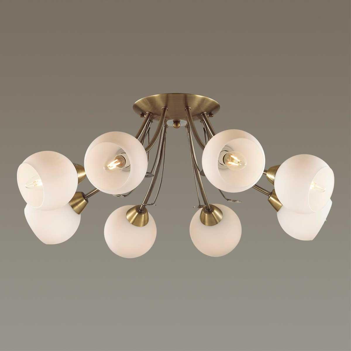 Производитель светильника рекомендует для устройства 8 ламп накаливания с цоколем E14 и мощностью 40 W, что позволит осветить помещение площадью 16 кв.м. Габариты изделия: высота – 260 мм, диаметр – 700 мм.