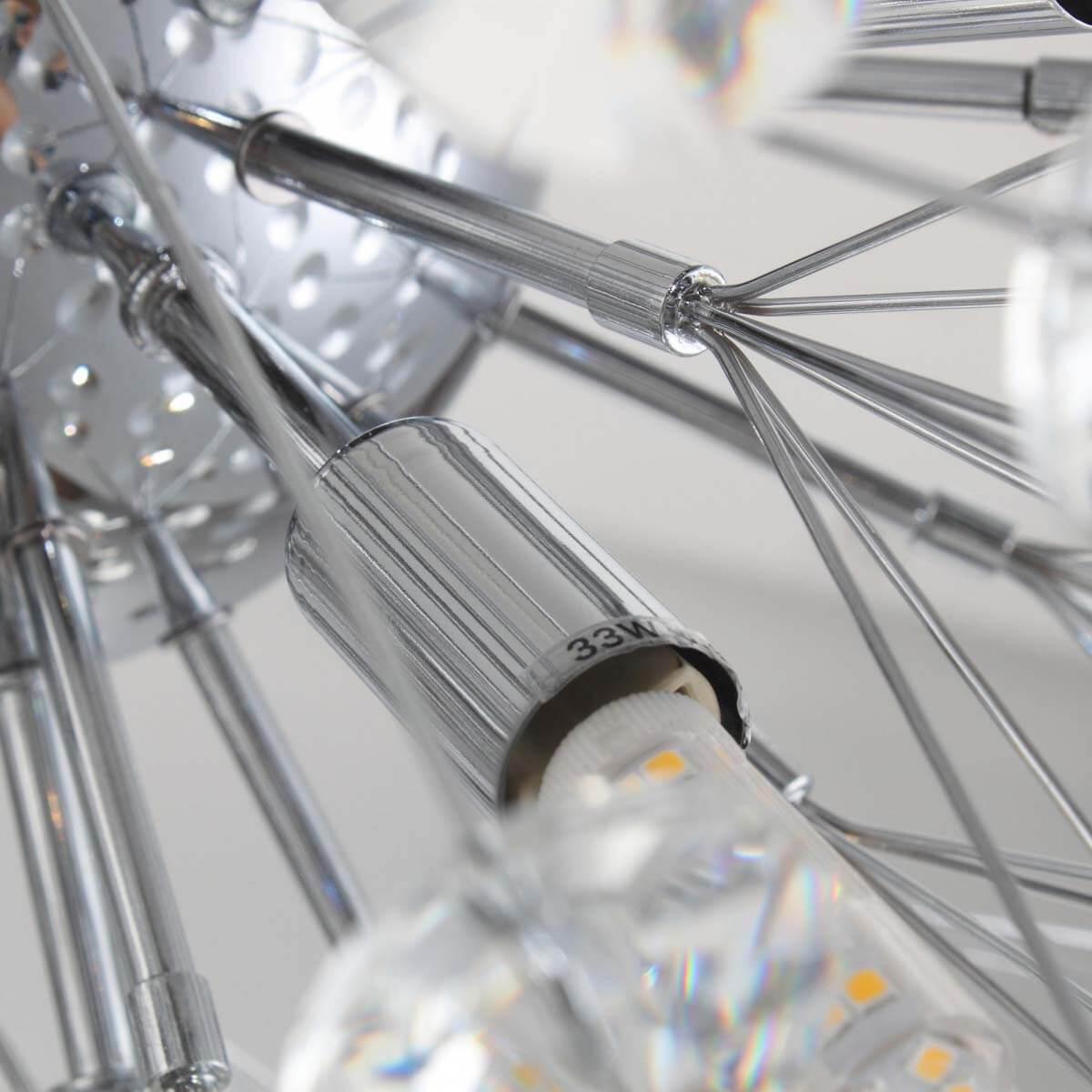 Производитель светильника рекомендует для устройства 7 светодиодных ламп с цоколем G9 и мощностью 40 W, что позволит осветить помещение площадью кв.м. Габариты изделия: высота – 200 мм, диаметр – 410 мм.