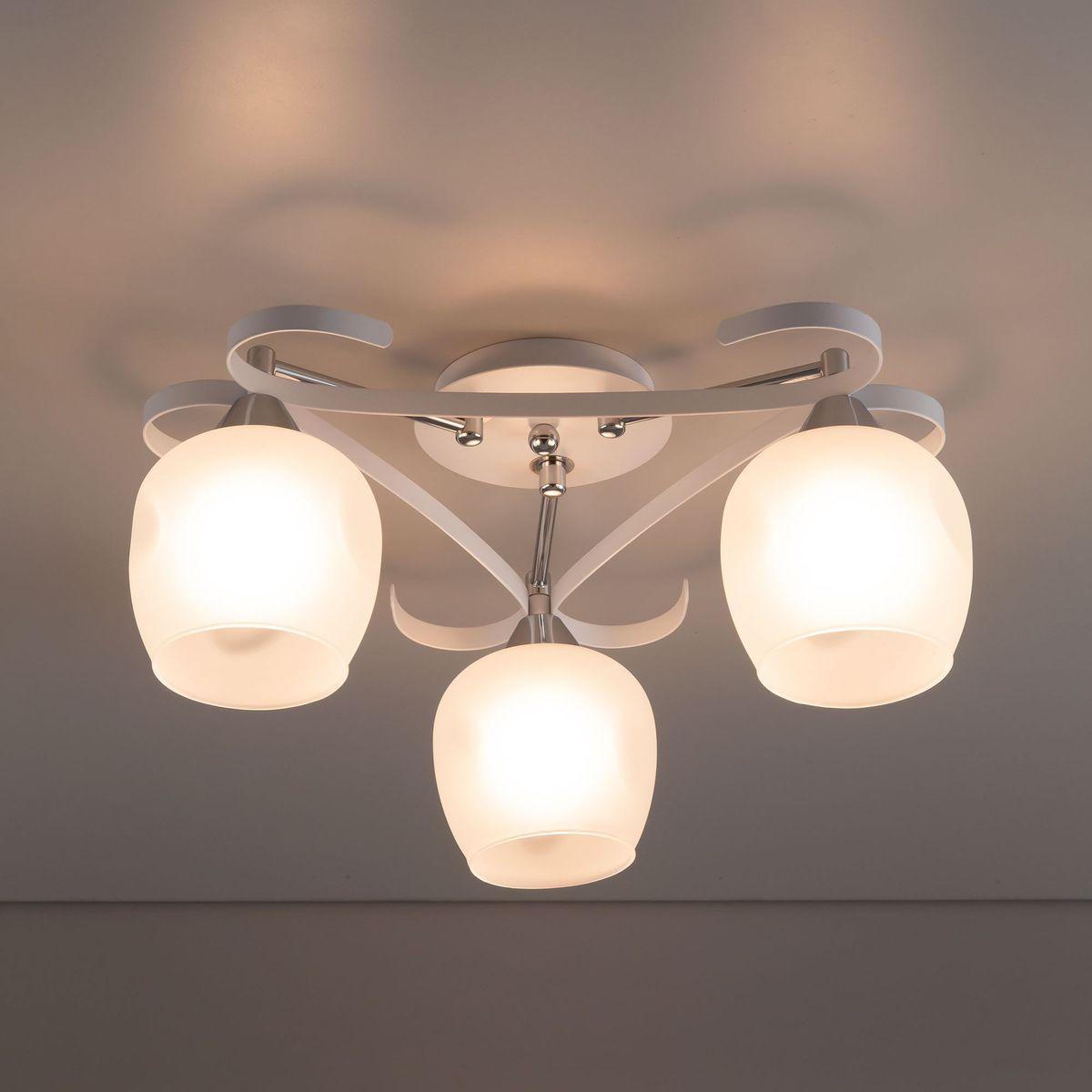 Потолочная люстра Citilux Сюзи CL171133 от Китайского бренда из коллекции Сюзи будет удачно смотреться в кухне в стиле модерн. Светильник выполнен из стекла с плафонами в форме белого цвета.