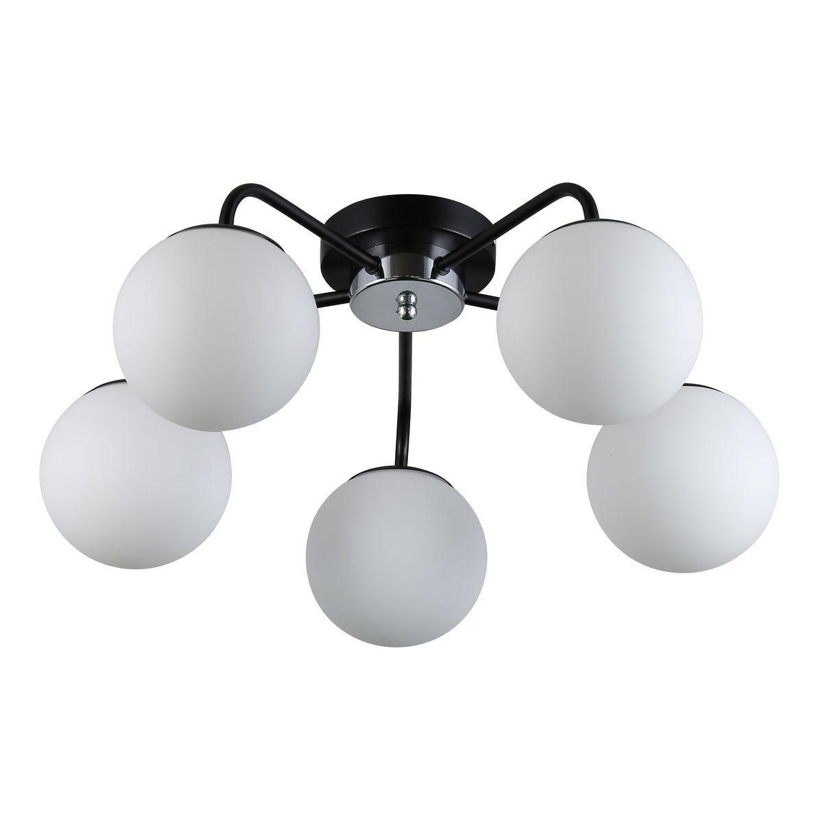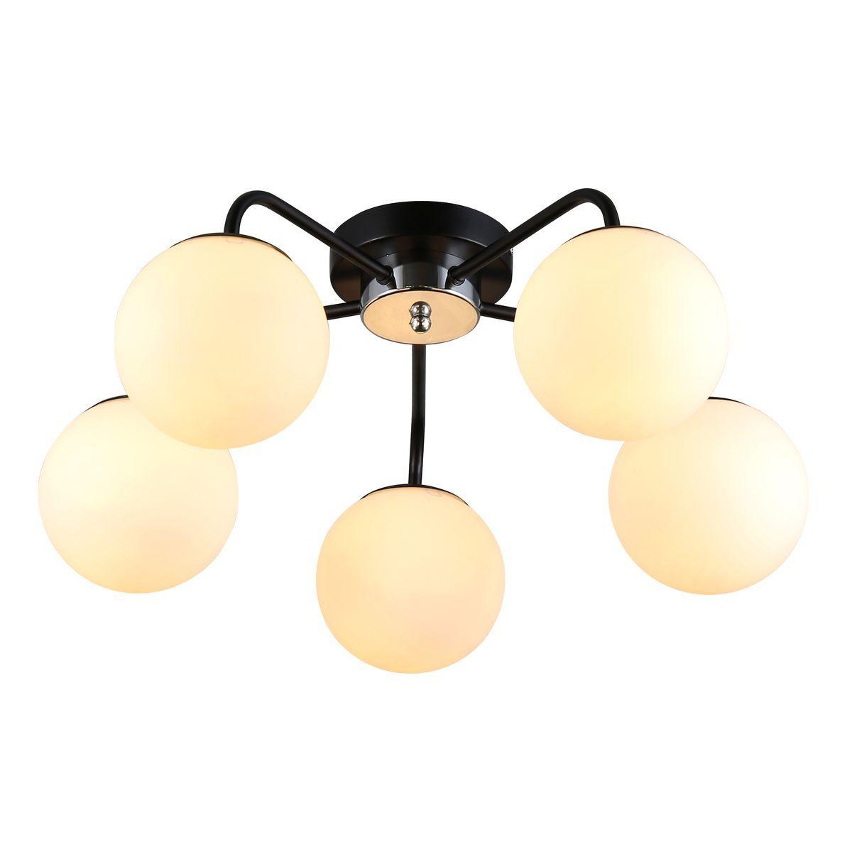 Производитель светильника рекомендует для устройства 5 ламп накаливания с цоколем E27 и мощностью 40 W, что позволит осветить помещение площадью 15 кв.м. Габариты изделия: высота – 210 мм, диаметр – 520 мм.