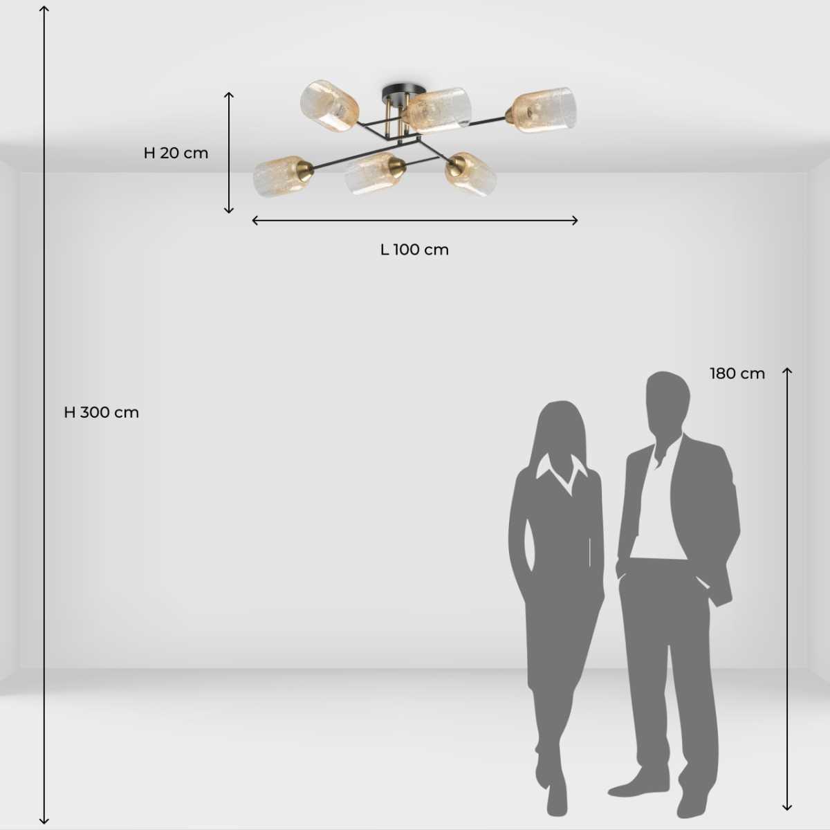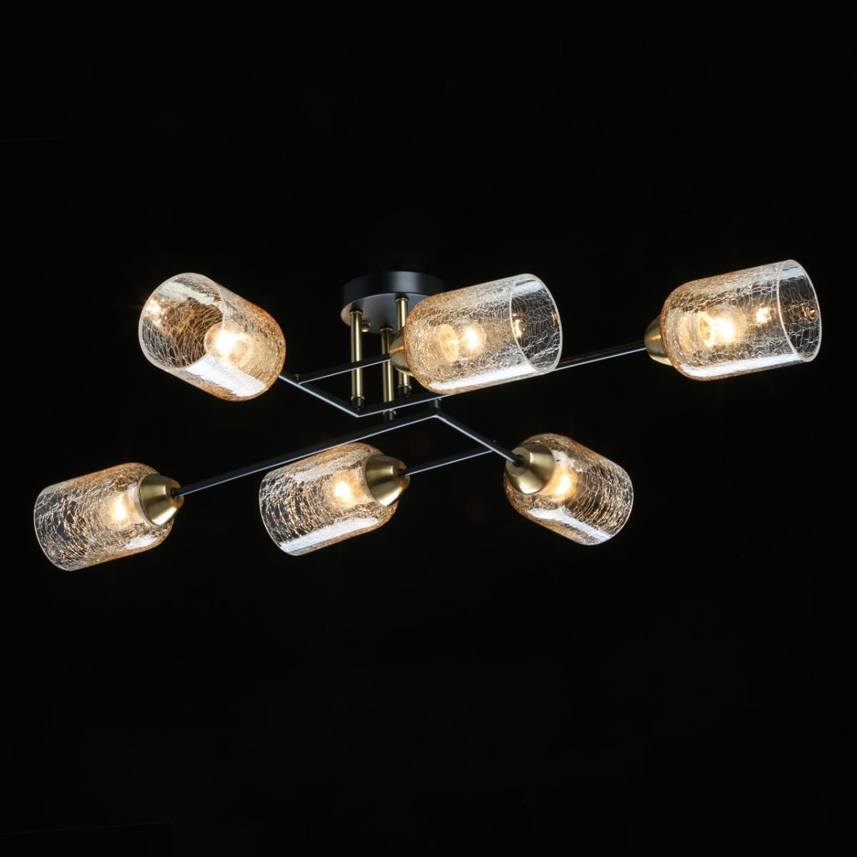 Производитель светильника рекомендует для устройства 6 ламп накаливания с цоколем E27 и мощностью 60 W, что позволит осветить помещение площадью 18 кв.м. Габариты изделия: высота – 200 мм, диаметр – мм.