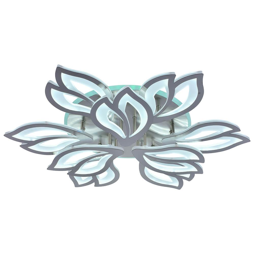 Потолочная светодиодная люстра Profit Light 8004/6+3 NKL от Китайского бренда из коллекции будет удачно смотреться в гостиной в стиле модерн. Светильник выполнен из акрила с плафонами в форме белого цвета.