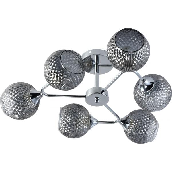 Потолочная люстра Rivoli Haley 3137-306 Б0055384 от бренда из коллекции Haley будет удачно смотреться в гостиной в стиле модерн. Светильник выполнен из стекла с плафонами в форме дымчатого цвета.