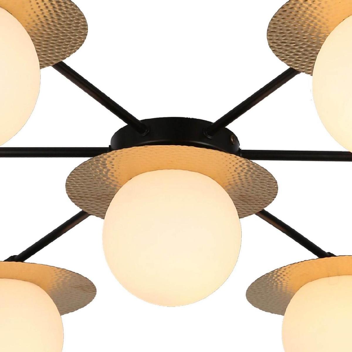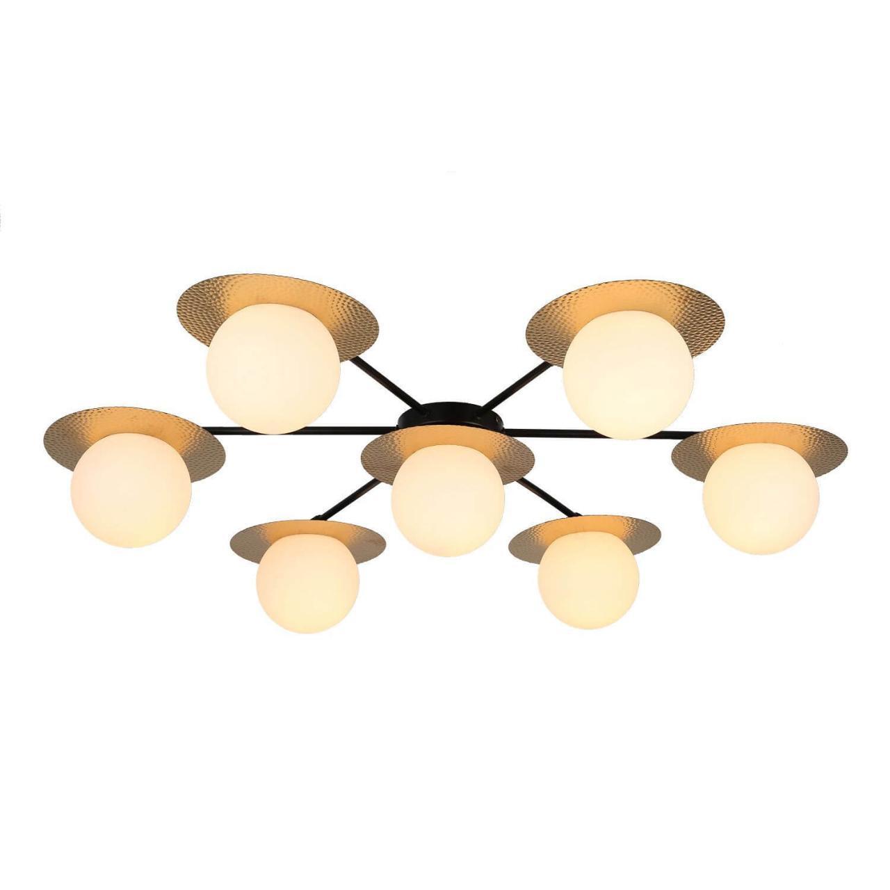 Производитель светильника рекомендует для устройства 7 ламп накаливания с цоколем E27 и мощностью 60 W, что позволит осветить помещение площадью 21 кв.м. Габариты изделия: высота – 155 мм, диаметр – 900 мм.