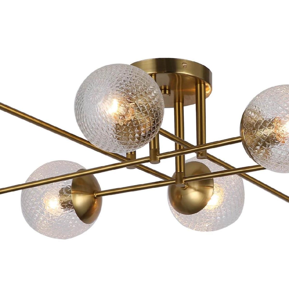 Производитель светильника рекомендует для устройства 8 ламп накаливания с цоколем E27 и мощностью 60 W, что позволит осветить помещение площадью 24 кв.м. Габариты изделия: высота – 220 мм, диаметр – 1070 мм.
