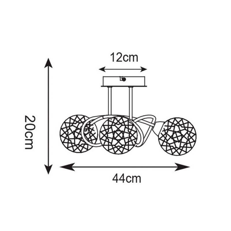 Производитель светильника рекомендует для устройства 3 галогеновые лампы с цоколем G9 и мощностью 33 W, что позволит осветить помещение площадью кв.м. Габариты изделия: высота – 200 мм, диаметр – 440 мм.