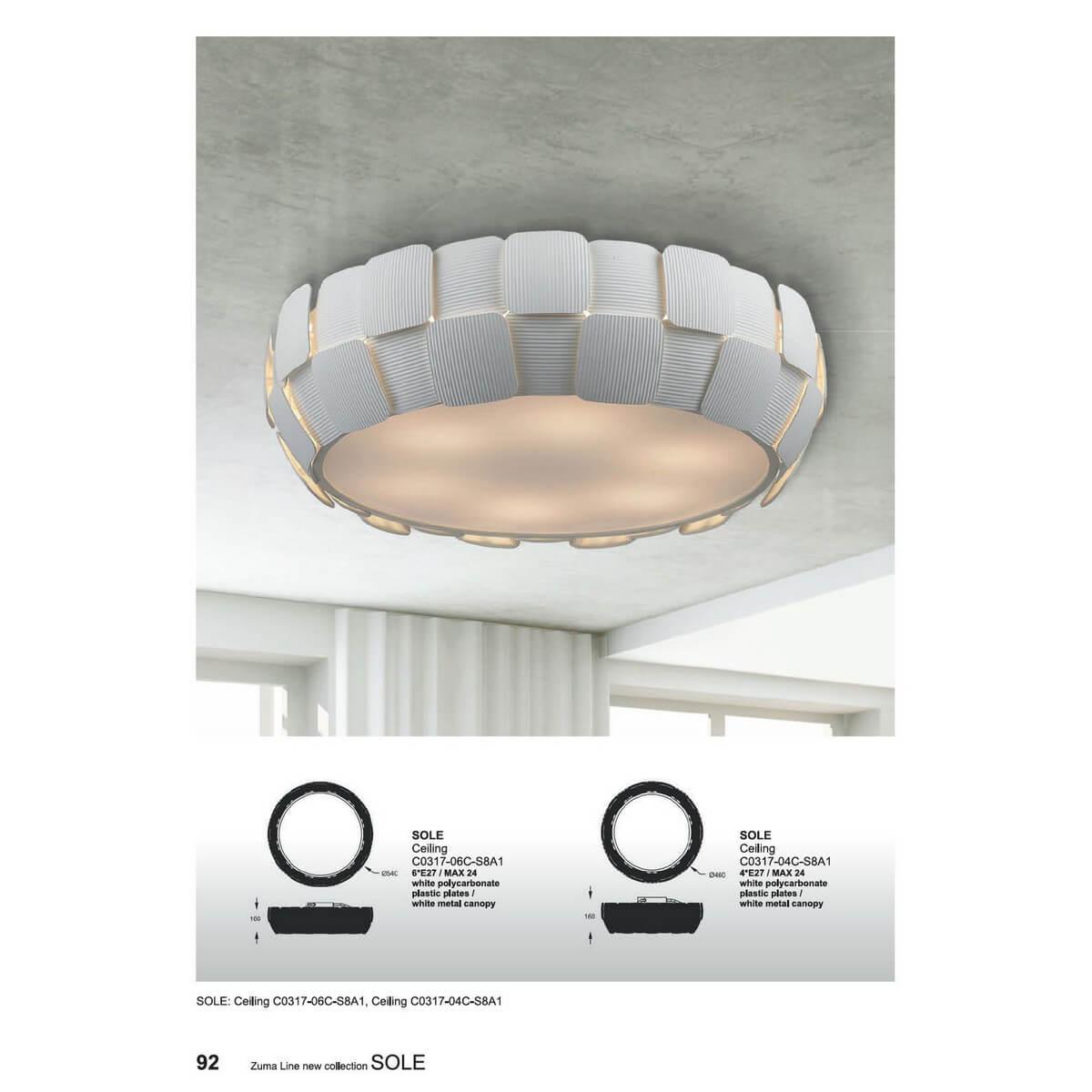 Потолочная люстра Zumaline Sole C0317-04C-S8A1 от Польского бренда из коллекции Sole будет удачно смотреться в гостиной в современном стиле. Светильник выполнен из пластика с плафонами в форме белого цвета.