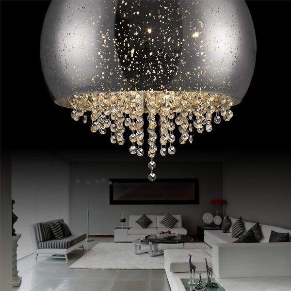 Производитель светильника рекомендует для устройства 5 галогеновых ламп с цоколем G9 и мощностью 42 W, что позволит осветить помещение площадью кв.м. Габариты изделия: высота – 315 мм, диаметр – 400 мм.