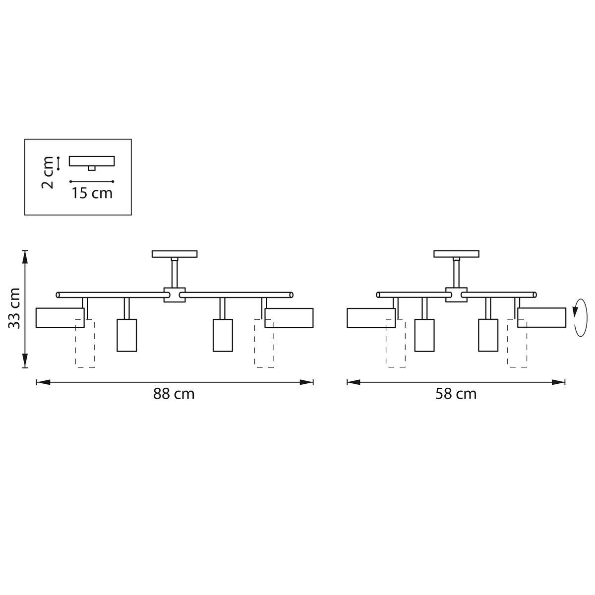 Производитель светильника рекомендует для устройства 8 галогеновых ламп с цоколем GU10 и мощностью 50 W, что позволит осветить помещение площадью кв.м. Габариты изделия: высота – 330 мм, диаметр – мм.