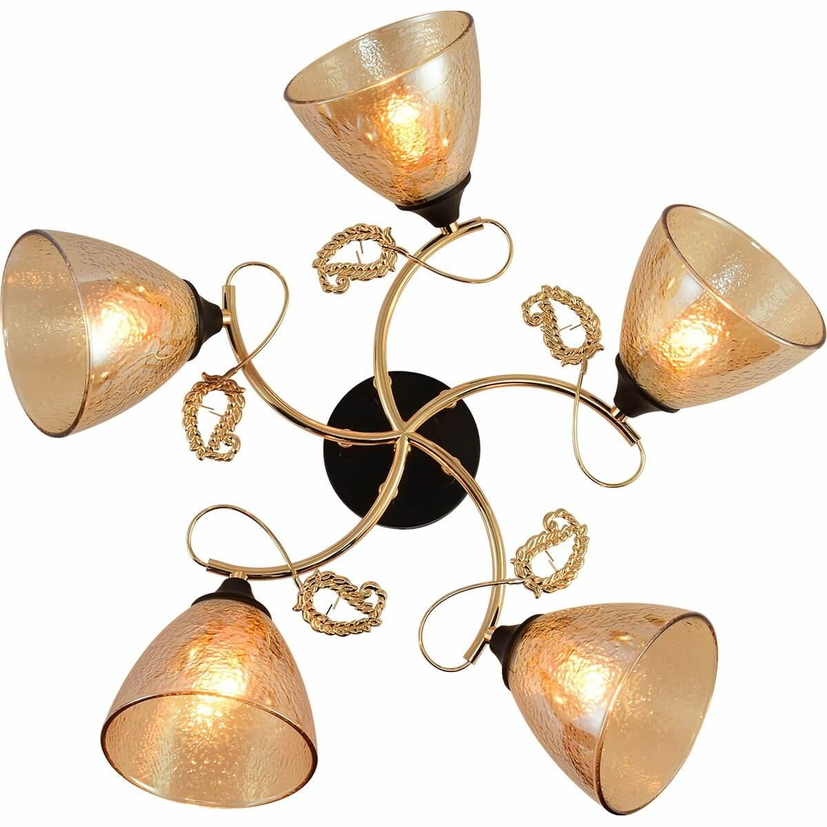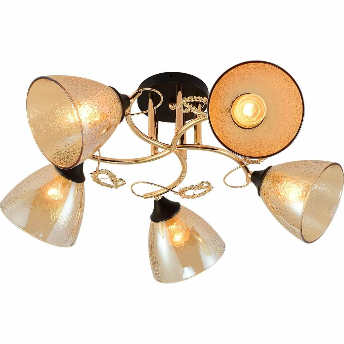 Производитель светильника рекомендует для устройства 5 ламп накаливания с цоколем E27 и мощностью 60 W, что позволит осветить помещение площадью 40 кв.м. Габариты изделия: высота – 250 мм, диаметр – мм.