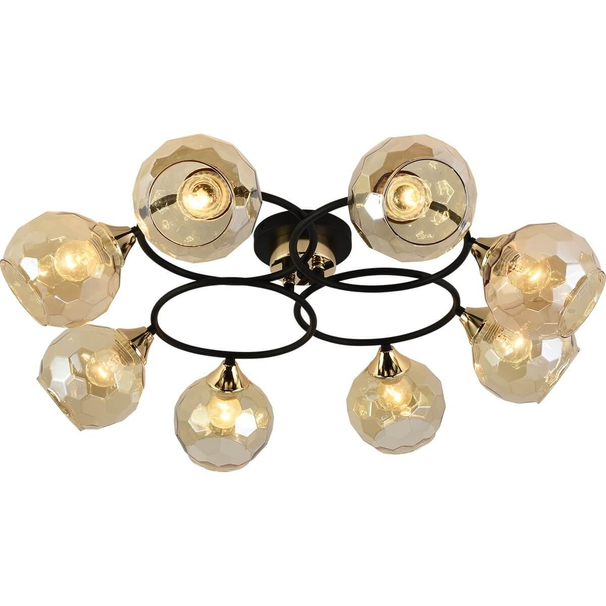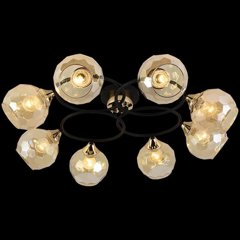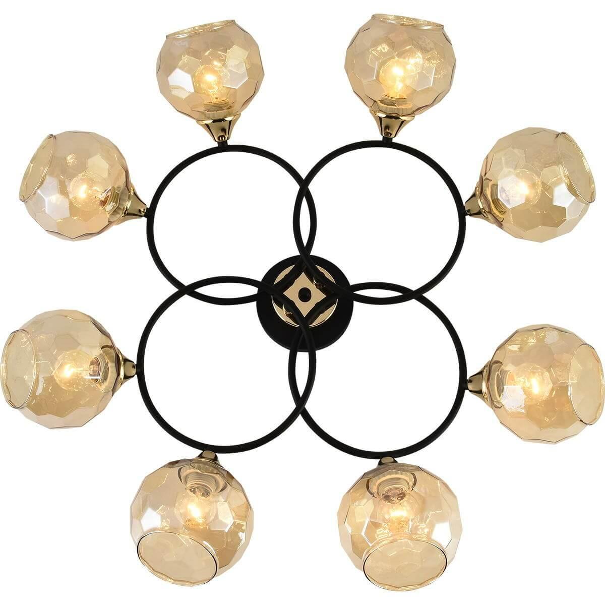 Производитель светильника рекомендует для устройства 8 ламп накаливания с цоколем E27 и мощностью 60 W, что позволит осветить помещение площадью 64 кв.м. Габариты изделия: высота – 190 мм, диаметр – мм.