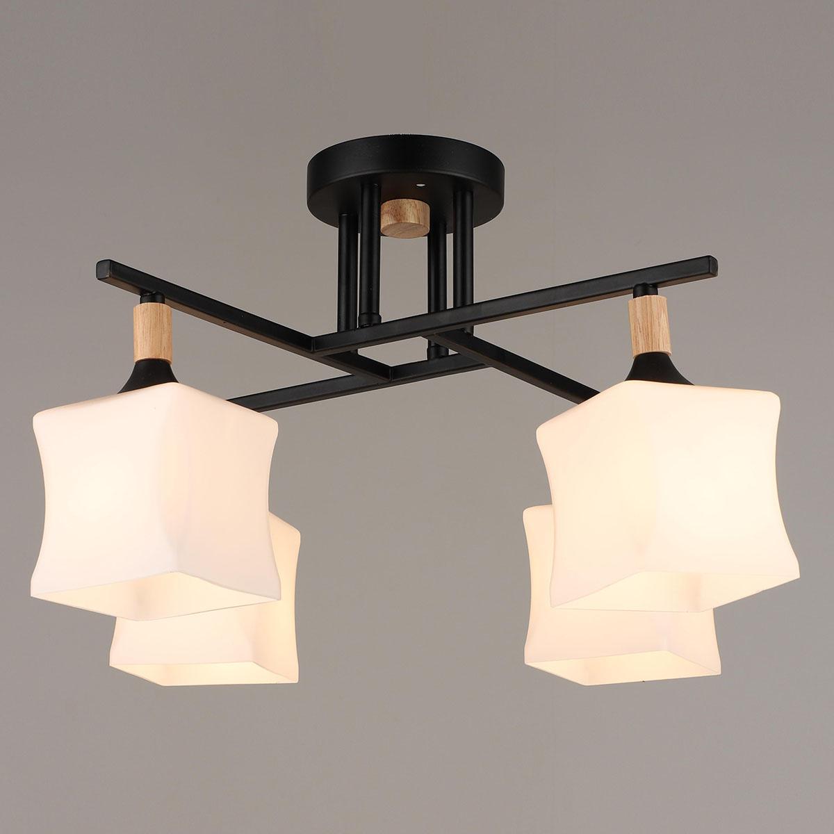 Производитель светильника рекомендует для устройства 4 лампы накаливания с цоколем E27 и мощностью 60 W, что позволит осветить помещение площадью 32 кв.м. Габариты изделия: высота – 280 мм, диаметр – мм.