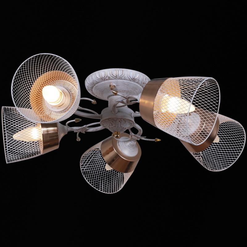 Производитель светильника рекомендует для устройства 5 ламп накаливания с цоколем E27 и мощностью 60 W, что позволит осветить помещение площадью 40 кв.м. Габариты изделия: высота – 230 мм, диаметр – мм.
