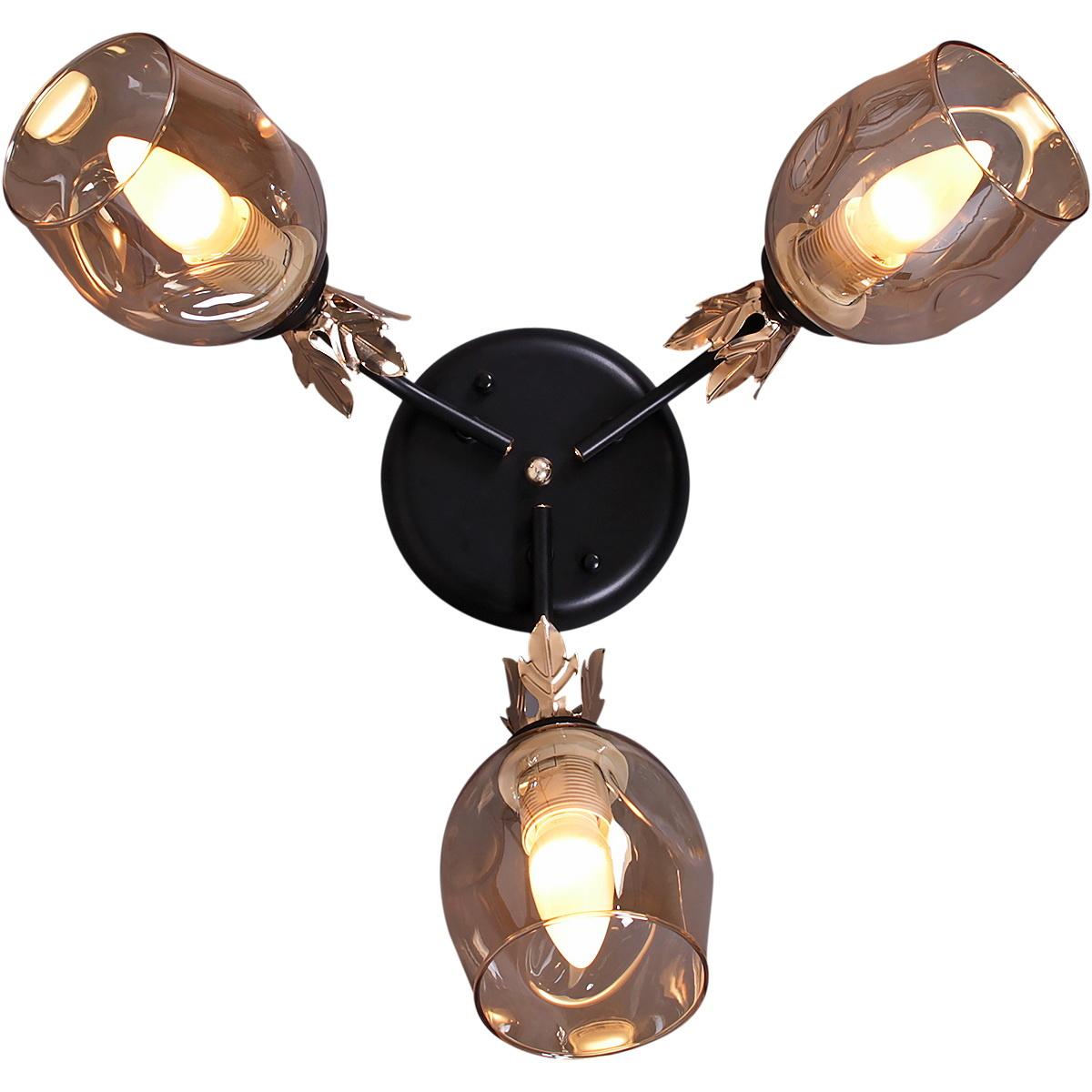 Производитель светильника рекомендует для устройства 3 лампы накаливания с цоколем E27 и мощностью 60 W, что позволит осветить помещение площадью 24 кв.м. Габариты изделия: высота – 230 мм, диаметр – мм.