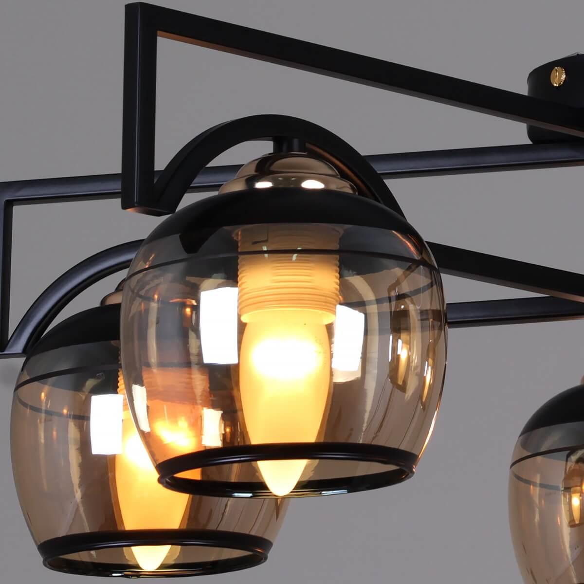 Производитель светильника рекомендует для устройства 5 ламп накаливания с цоколем E27 и мощностью 60 W, что позволит осветить помещение площадью 40 кв.м. Габариты изделия: высота – 210 мм, диаметр – мм.