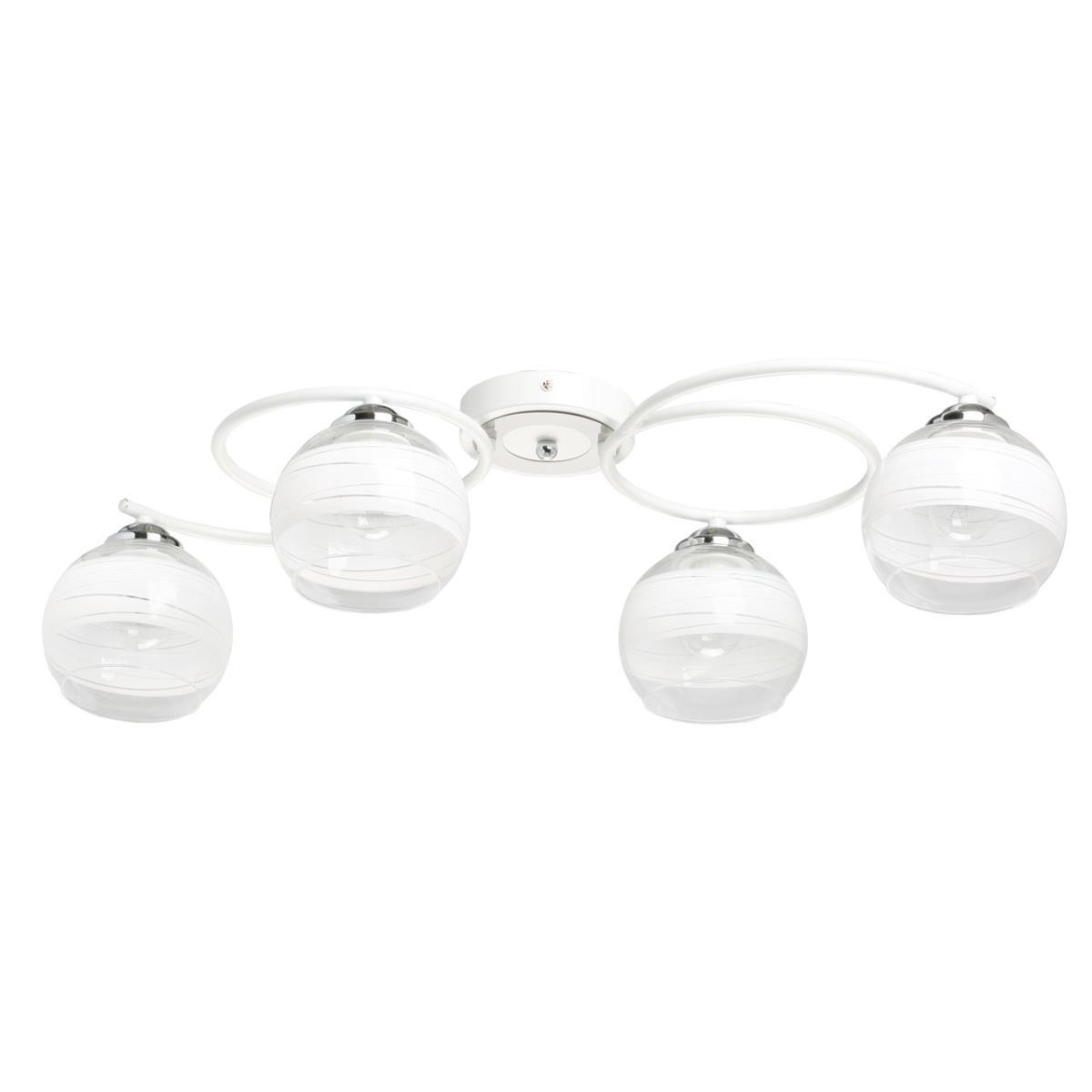 Производитель светильника рекомендует для устройства 4 лампы накаливания с цоколем E27 и мощностью 60 W, что позволит осветить помещение площадью 12 кв.м. Габариты изделия: высота – 180 мм, диаметр – 120 мм.