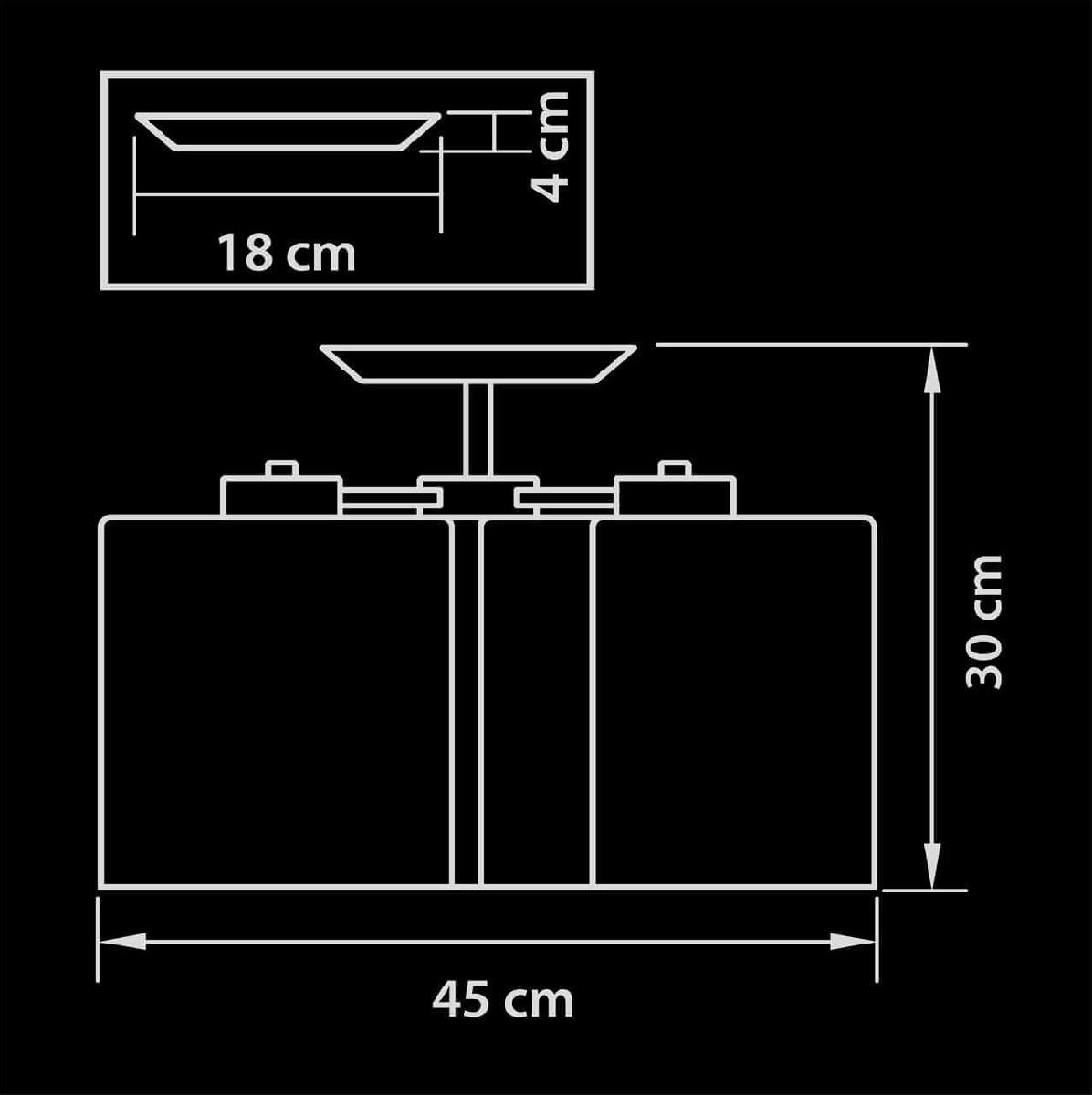 Производитель светильника рекомендует для устройства 3 лампы накаливания с цоколем E27 и мощностью 40 W, что позволит осветить помещение площадью 6 кв.м. Габариты изделия: высота – 300 мм, диаметр – 450 мм.