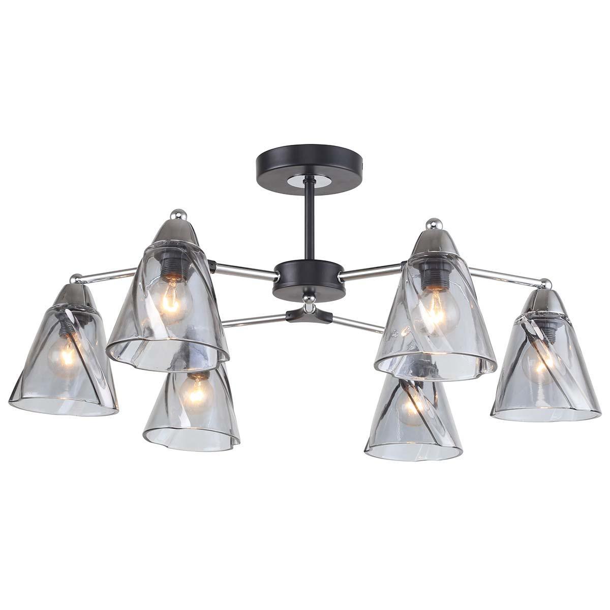 Потолочная люстра Rivoli Connie 3144-306 Б0055485 от бренда из коллекции Connie будет удачно смотреться в спальни в стиле модерн. Светильник выполнен из стекла с плафонами в форме дымчатого цвета.
