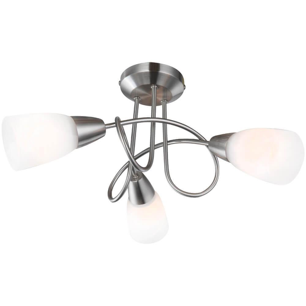 Потолочная люстра Globo Indira 67132-3 от Китайского бренда Globo из коллекции Indira будет удачно смотреться в кухне в современном стиле. Светильник выполнен из стекла с плафонами в форме овала белого цвета.