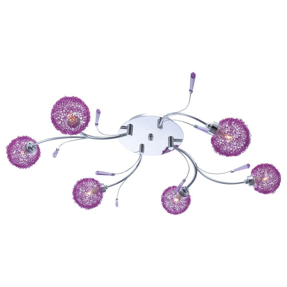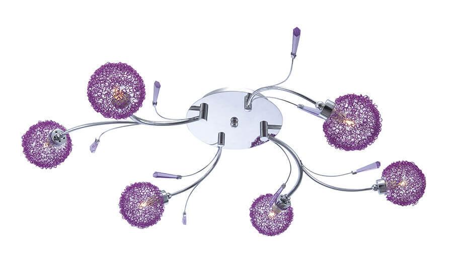 Потолочная люстра Globo Cora 56646-6 от Китайского бренда Globo из коллекции Cora будет удачно смотреться в спальни в современном стиле. Светильник выполнен из стекла с плафонами в форме круга фиолетового цвета.