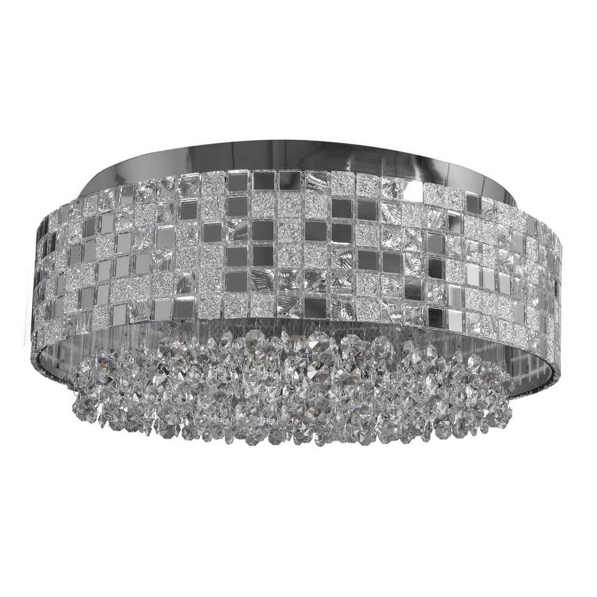 Производитель светильника рекомендует для устройства 6 галогеновых ламп с цоколем G9 и мощностью 40 W, что позволит осветить помещение площадью 13,3 кв.м. Габариты изделия: высота – 170 мм, диаметр – 410 мм.
