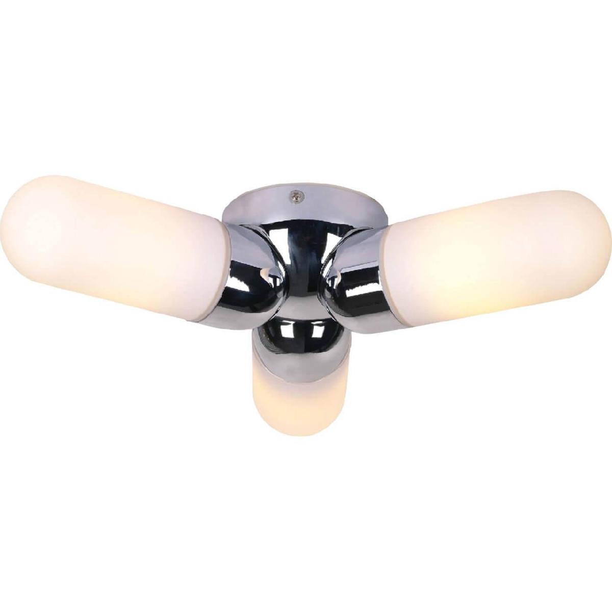 Производитель светильника рекомендует для устройства 3 лампы накаливания с цоколем E14 и мощностью 40 W, что позволит осветить помещение площадью 6,7 кв.м. Габариты изделия: высота – 85 мм, диаметр – 388 мм.