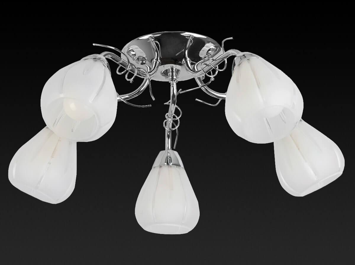 Потолочная люстра Toplight Alexia TL3640X-05CH от Российского бренда Toplight из коллекции Alexia будет удачно смотреться в гостиной в стиле флористика. Светильник выполнен из стекла с плафонами в форме Флористика белого цвета.