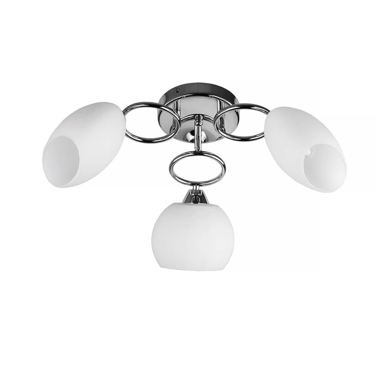 Потолочная люстра Toplight Madalyn TL2650X-03CH от Российского бренда Toplight из коллекции Madalyn будет удачно смотреться в спальни в хай-тек стиле. Светильник выполнен из стекла с плафонами в форме овала белого цвета.