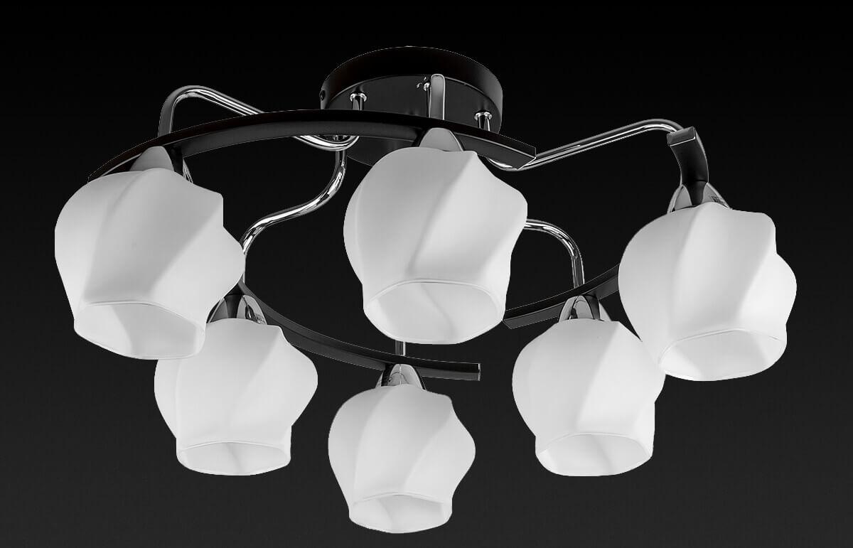 Потолочная люстра Toplight Milana TL2750X-06WC от Китайского бренда Toplight из коллекции Milana будет удачно смотреться в гостиной в современном стиле. Светильник выполнен из стекла с плафонами в форме Флористика белого цвета.