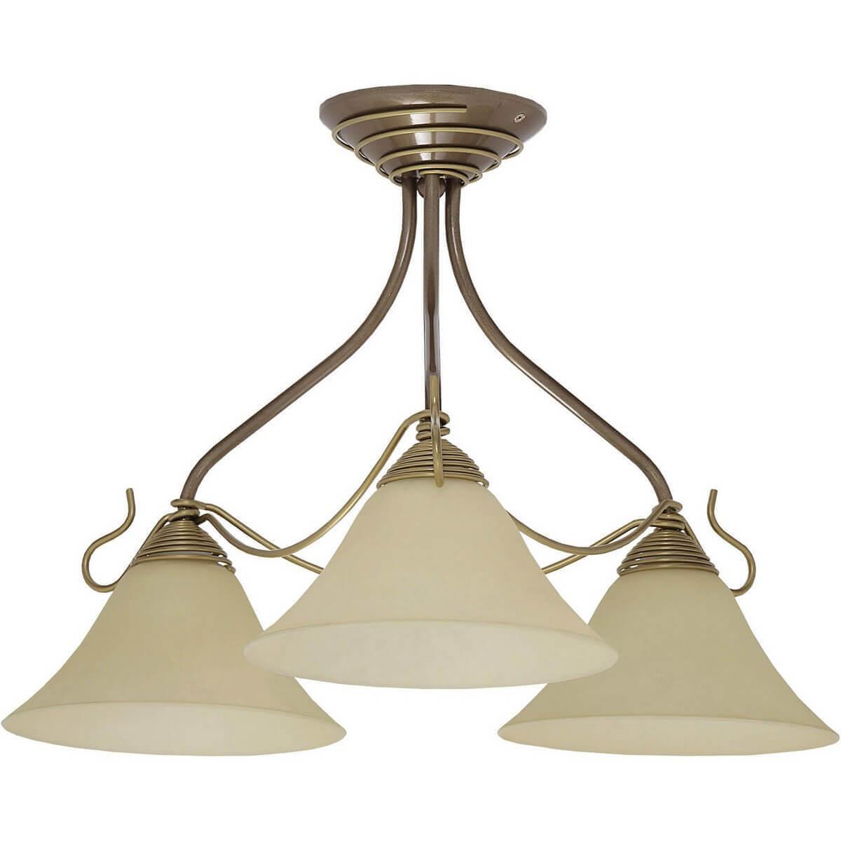 Производитель светильника рекомендует для устройства 3 лампы накаливания с цоколем E27 и мощностью 60 W, что позволит осветить помещение площадью 10 кв.м. Габариты изделия: высота – 420 мм, диаметр – 520 мм.