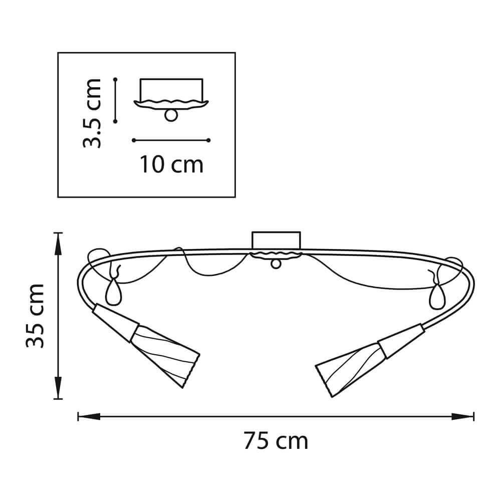 Производитель светильника рекомендует для устройства 6 светодиодных ламп с цоколем G9 и мощностью 25 W, что позволит осветить помещение площадью кв.м. Габариты изделия: высота – 350 мм, диаметр – 750 мм.