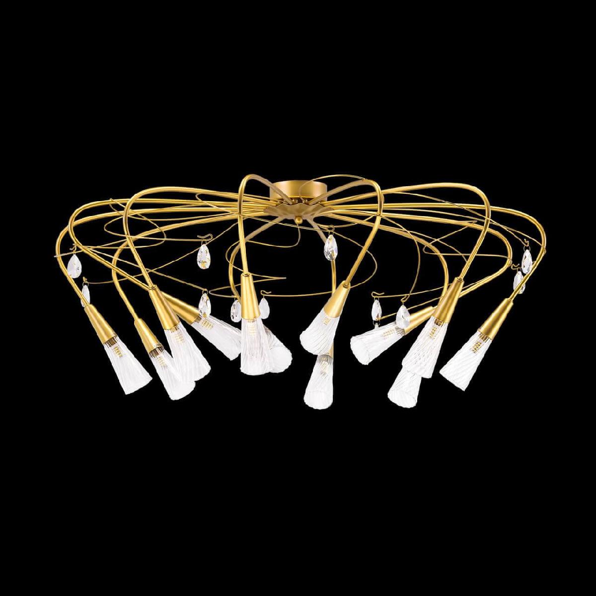 Производитель светильника рекомендует для устройства 12 светодиодных ламп с цоколем G9 и мощностью 25 W, что позволит осветить помещение площадью кв.м. Габариты изделия: высота – 450 мм, диаметр – 1050 мм.