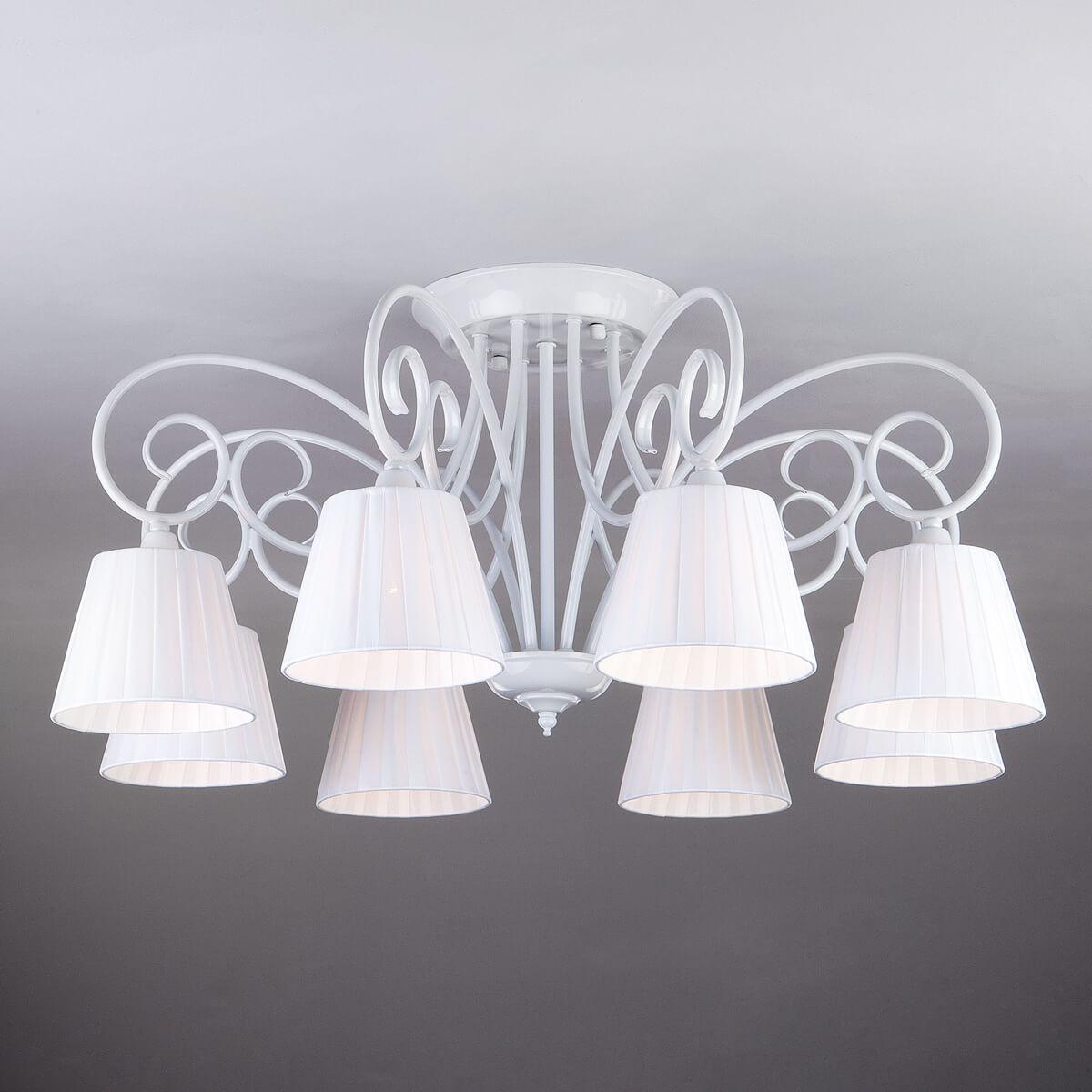 Производитель светильника рекомендует для устройства 8 ламп накаливания с цоколем E14 и мощностью 40 W, что позволит осветить помещение площадью кв.м. Габариты изделия: высота – 376 мм, диаметр – 830 мм.