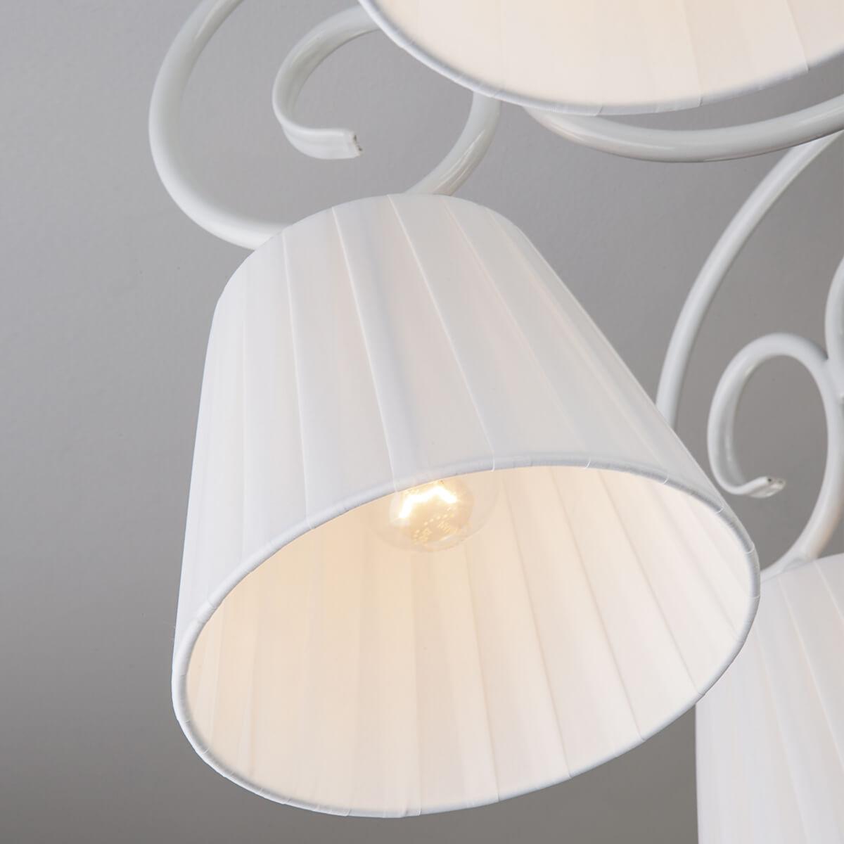 Подвесная люстра Bogates 303/8 от бренда Bogates из коллекции Severina будет удачно смотреться в гостиной в стиле модерн. Светильник выполнен из ткани с плафонами в форме конуса белого цвета.