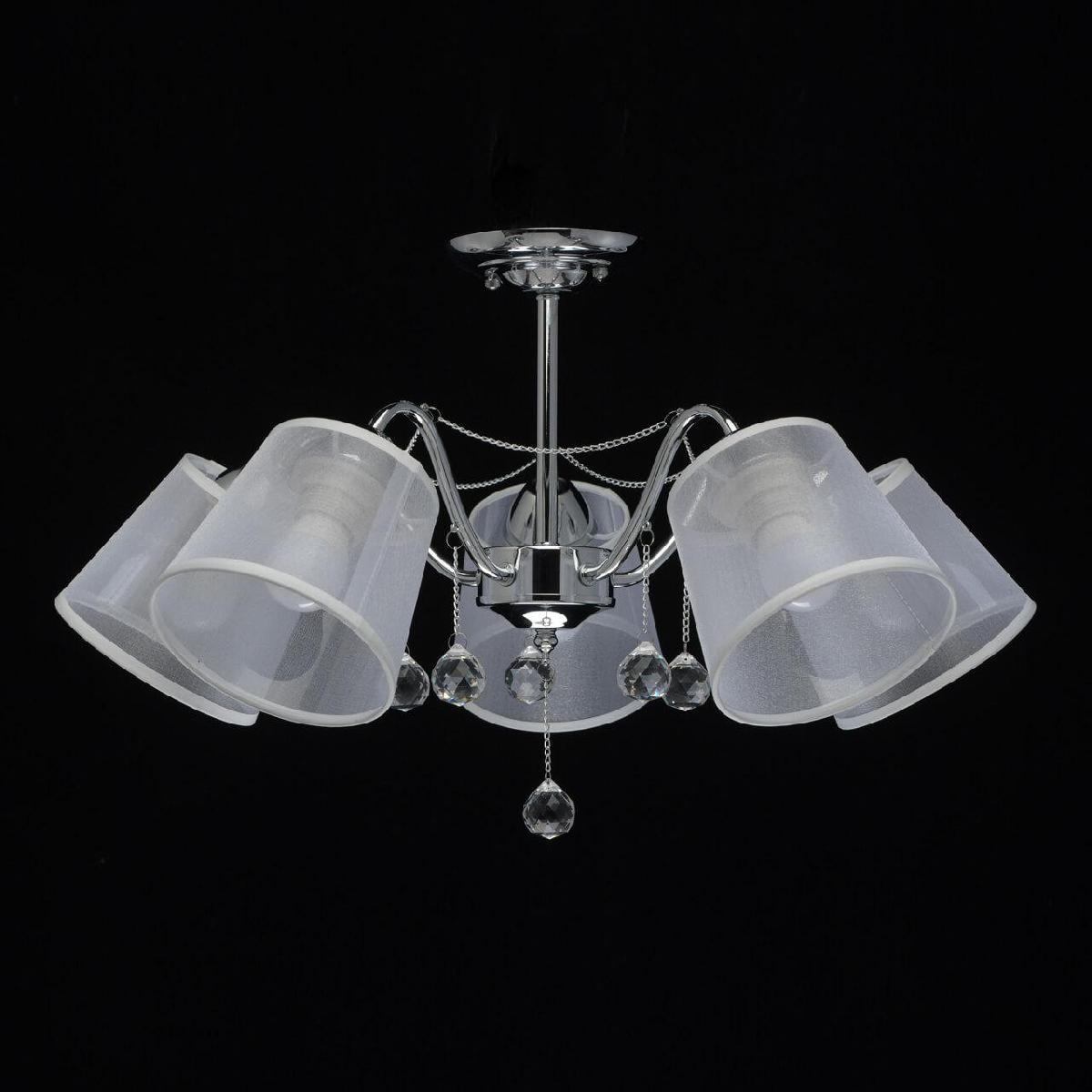 Производитель светильника рекомендует для устройства 5 ламп накаливания с цоколем E27 и мощностью 60 W, что позволит осветить помещение площадью 17 кв.м. Габариты изделия: высота – 340 мм, диаметр – 600 мм.
