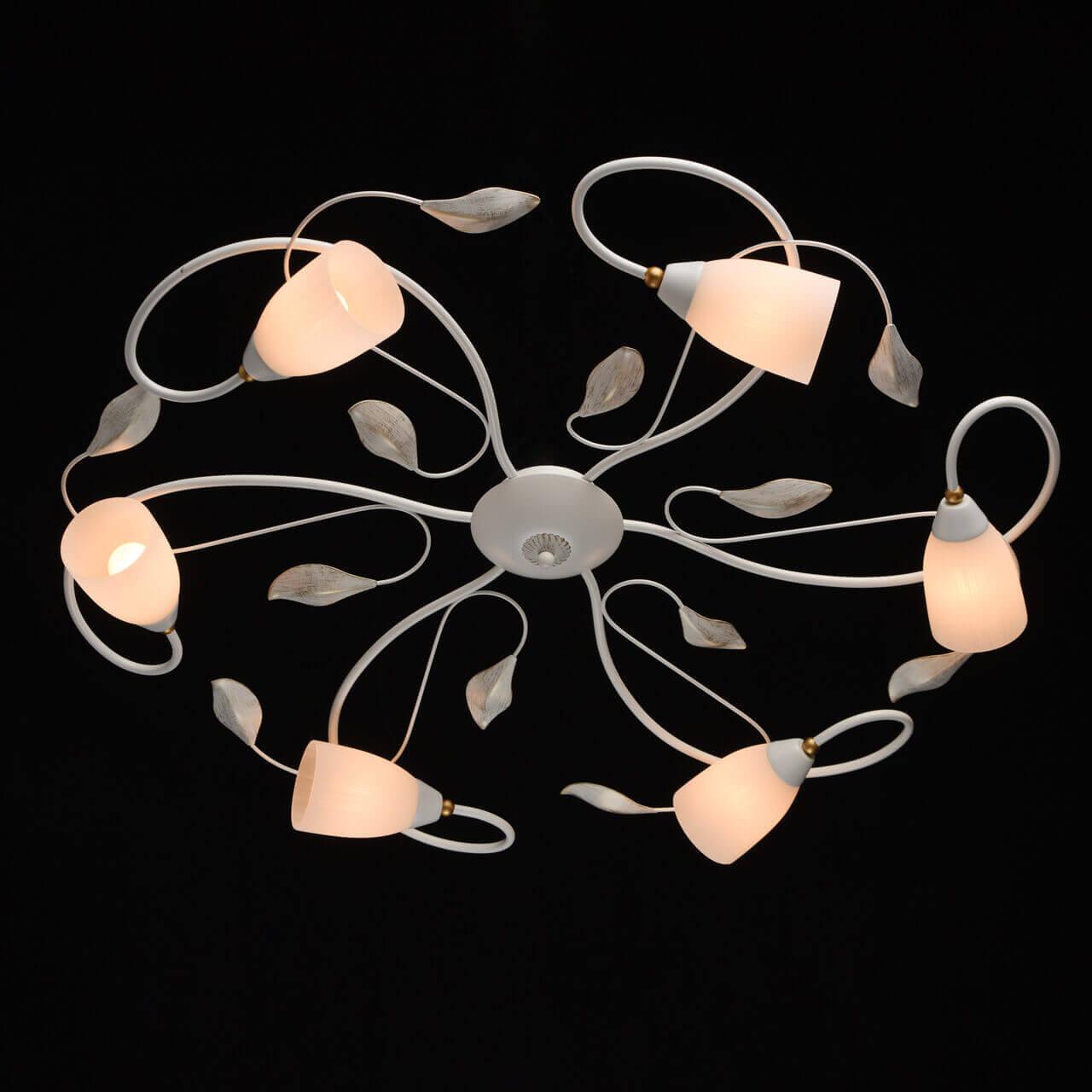 Потолочная люстра MW-Light Верона 334012906 от Немецкого бренда MW-Light из коллекции Верона будет удачно смотреться в спальни в стиле флористика. Светильник выполнен из стекла с плафонами в форме конуса белого цвета.