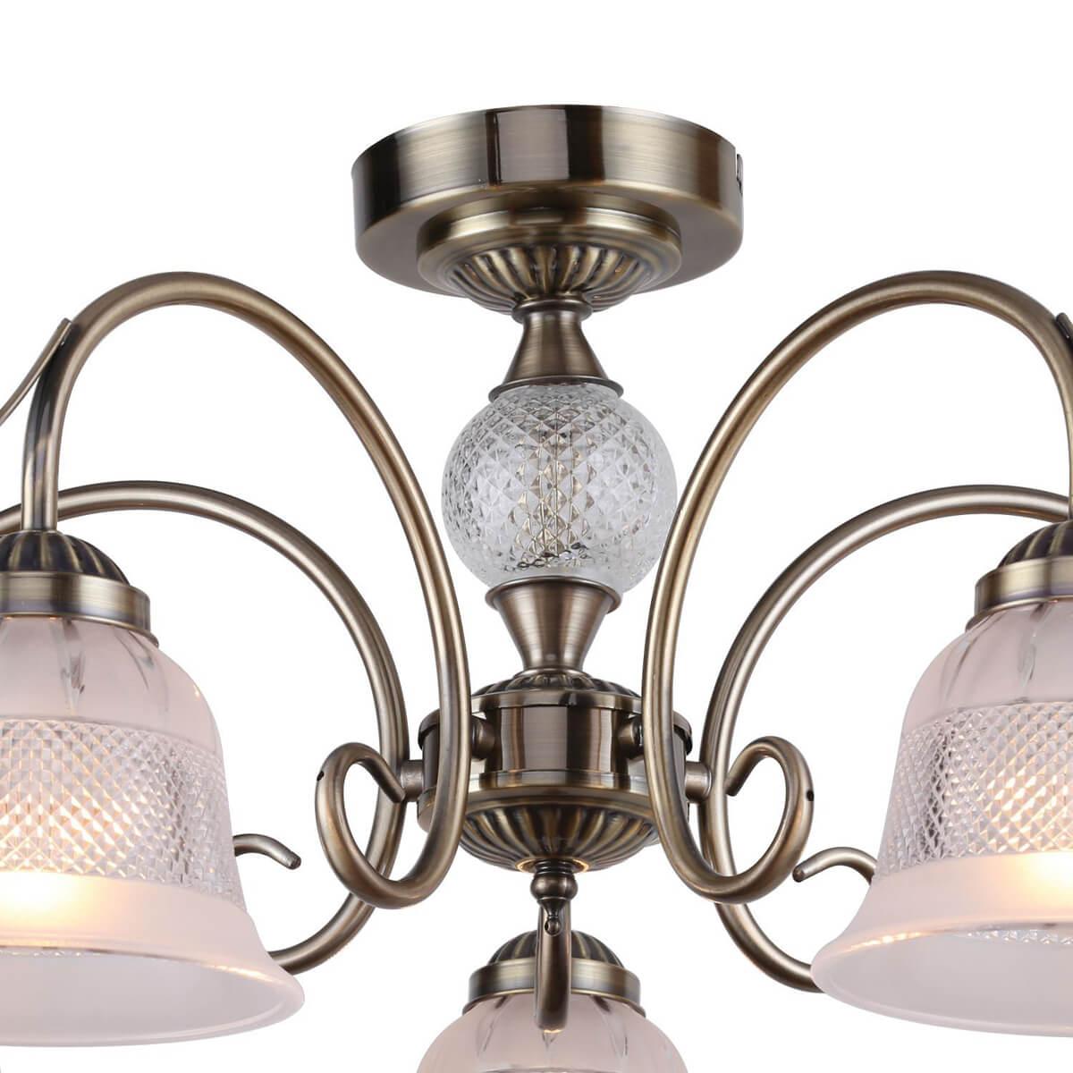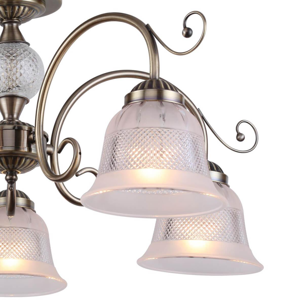 Производитель светильника рекомендует для устройства 5 ламп накаливания с цоколем E14 и мощностью 40 W, что позволит осветить помещение площадью 11 кв.м. Габариты изделия: высота – 300 мм, диаметр – 610 мм.