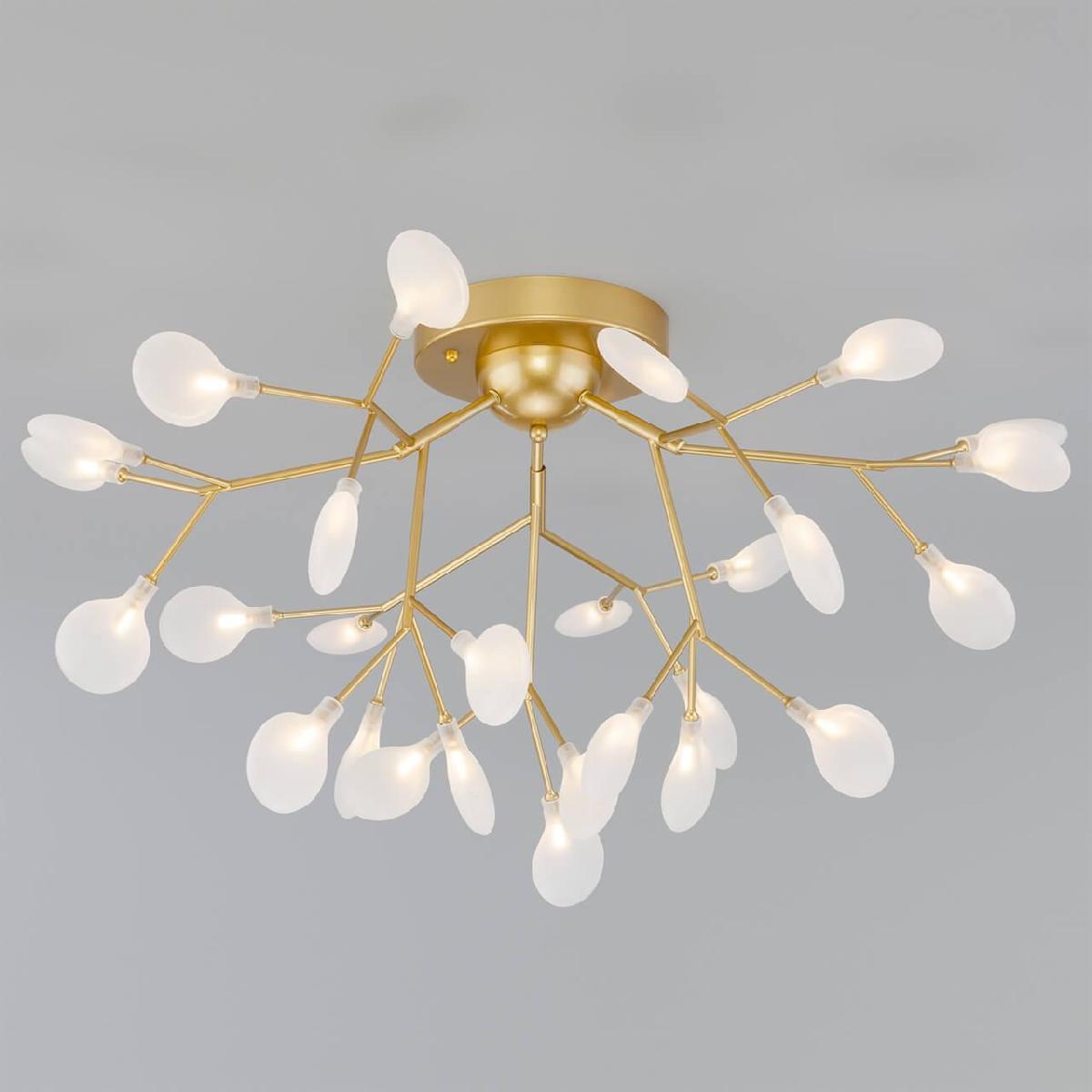 Производитель светильника рекомендует для устройства 27 галогеновых ламп с цоколем G4 и мощностью 3 W, что позволит осветить помещение площадью кв.м. Габариты изделия: высота – 405 мм, диаметр – 750 мм.
