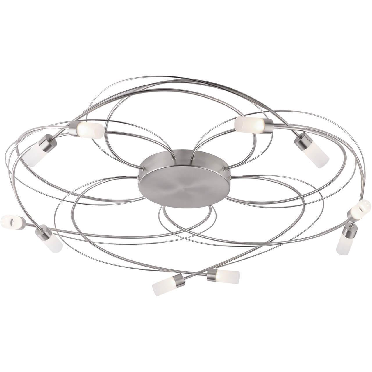 Производитель светильника рекомендует для устройства 10 галогеновых ламп с цоколем G9 и мощностью 33 W, что позволит осветить помещение площадью кв.м. Габариты изделия: высота – 155 мм, диаметр – 825 мм.