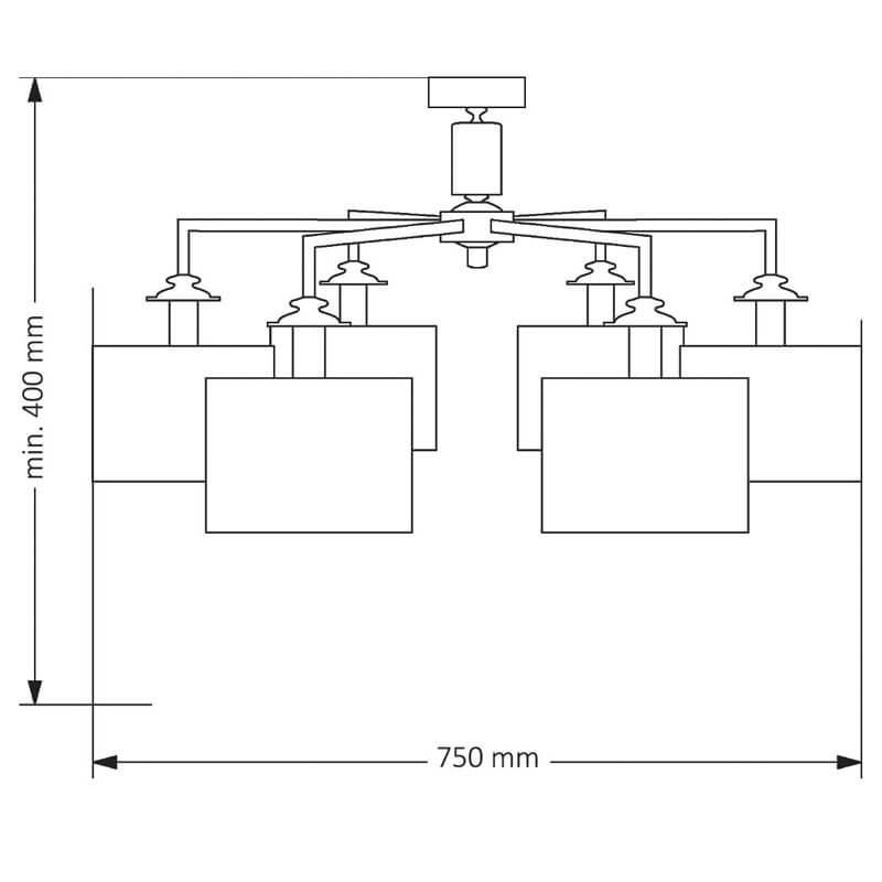 Производитель светильника рекомендует для устройства 6 ламп накаливания с цоколем E14 и мощностью 60 W, что позволит осветить помещение площадью кв.м. Габариты изделия: высота – 400 мм, диаметр – 750 мм.