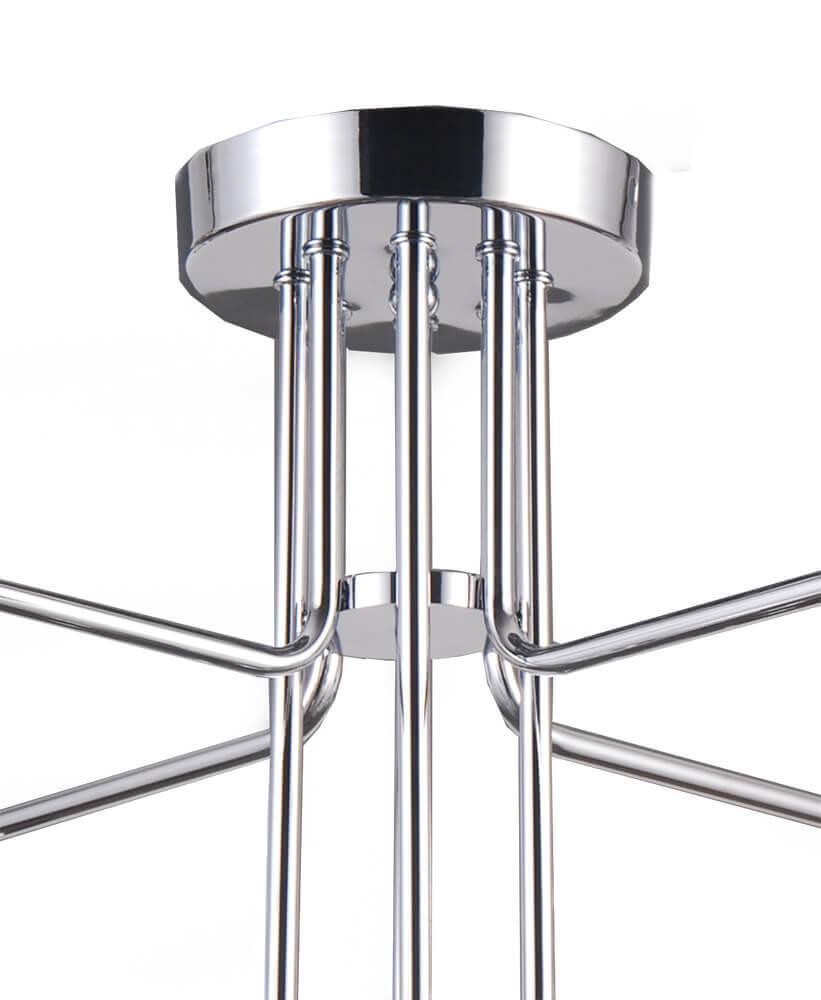 Производитель светильника рекомендует для устройства 8 ламп накаливания с цоколем E27 и мощностью 60 W, что позволит осветить помещение площадью 24 кв.м. Габариты изделия: высота – 360 мм, диаметр – 850 мм.
